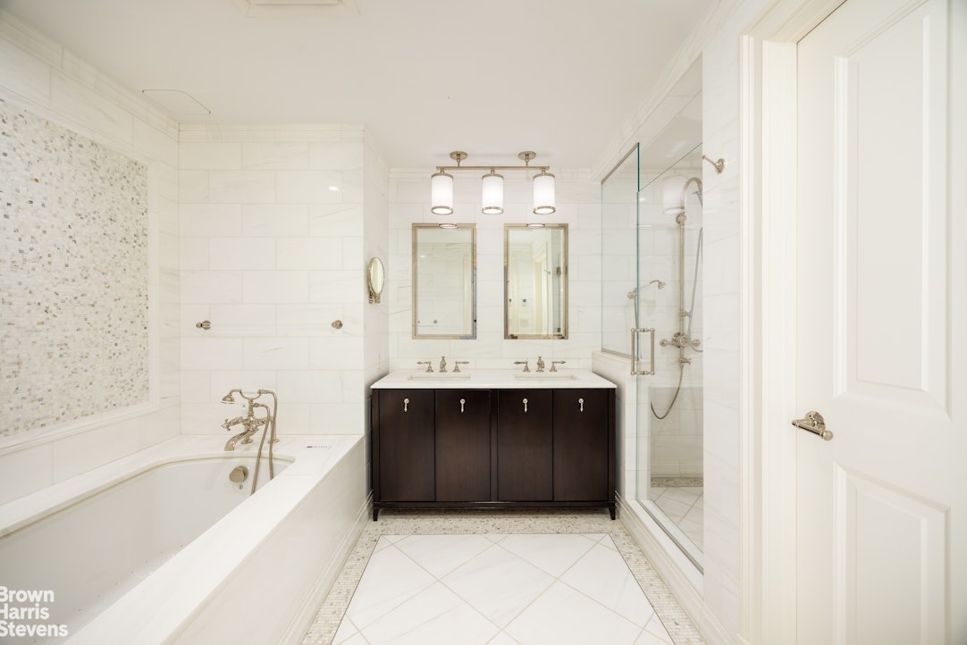 The bedroom wing features 3 bedrooms and three beautiful marble bathrooms, all with very generous closets. The oversized, double primary bedroom (which could be restored easily to 2 bedrooms!)has custom built-ins, a huge walk-in closet and en-suite primary bathroom with Waterworks fixtures, double vanity, radiant heat flooring and Calcatta marble. It faces tranquil West End Avenue.