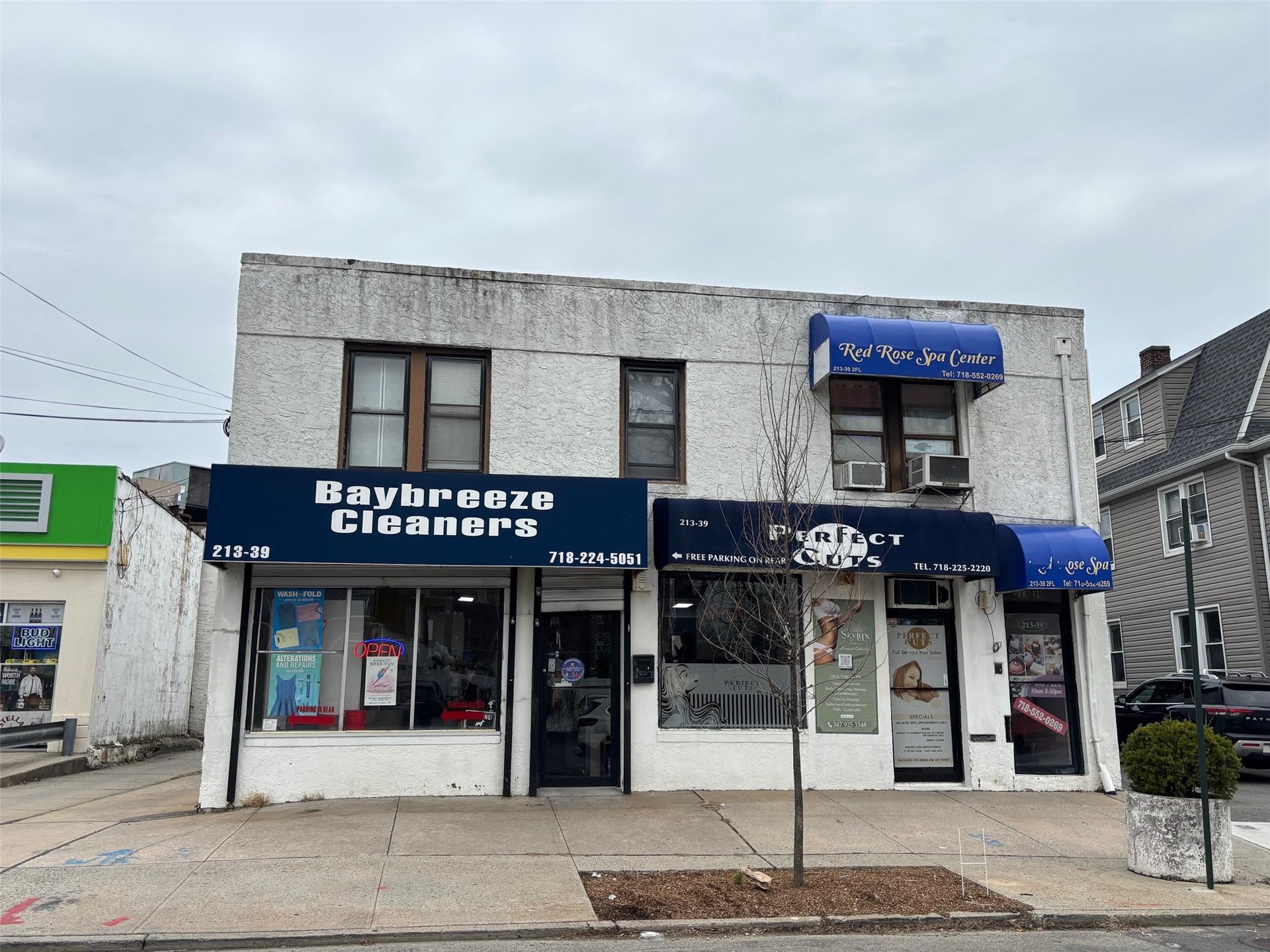 There are two buildings back to back on the one lot, 50x200. 213-39 35 Ave , there is a two stories commercial building with 2 stores on the first floor, 2 offices on the second floor. on the 213-42 34 Road is a building with 12 rent stabilization apartments/ laundry room in the basement. multiple outdoor parking spaces in the back yard .