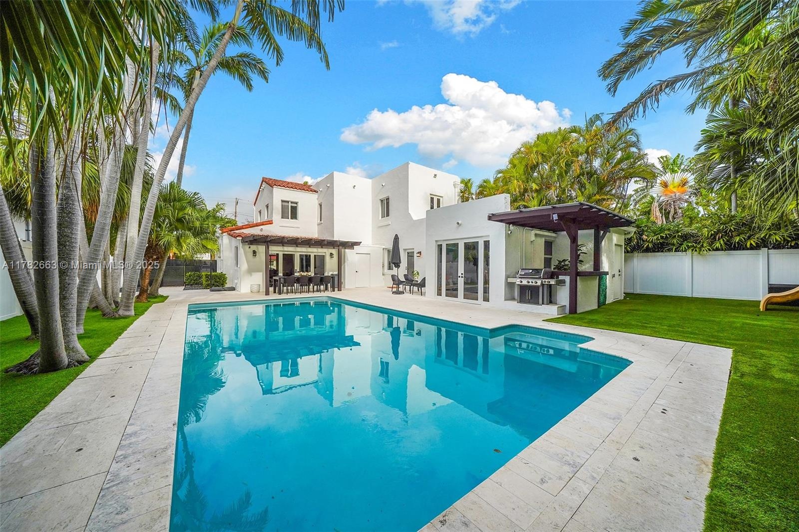 Nestled in the heart of Miami Beach’s coveted La Gorce neighborhood, this beautifully renovated Old Spanish-style home blends timeless charm with modern upgrades. Featuring 3 spacious bedrooms upstairs including primary bed and bath, and 1 flexible bedroom/office space on entry level with full bath. Fully updated electrical and plumbing systems ensure safety and efficiency. Elevated construction, a whole-house natural gas generator, impact windows, and a water filtration system with PFAS removal offer added protection and wellness. Includes laundry room with modern washer and natural gas dryer. Outside, enjoy a private tropical oasis with 50+ mature palms, a resort-style 8-ft deep pool, and a built-in grill—perfect for entertaining or relaxing.