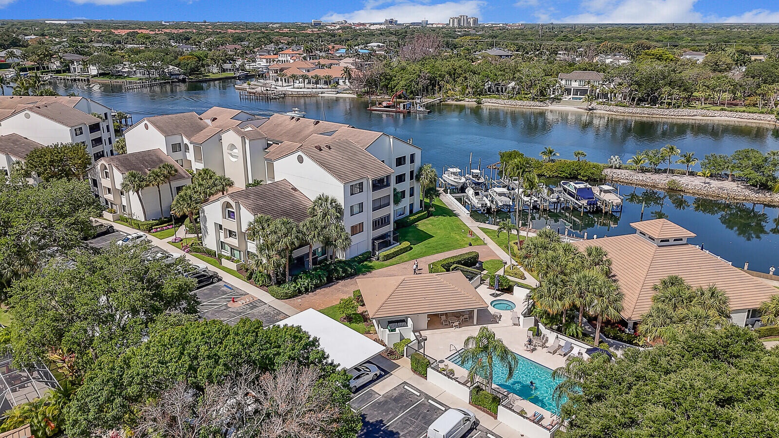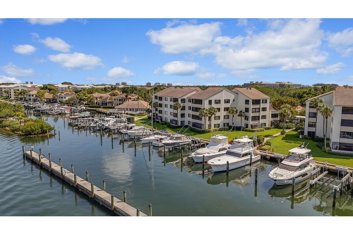 Welcome to your serene coastal retreat nestled in the heart of Juno Beach, within the sought-after gated, intracoastal community of Oak Harbour. This spacious two-level, second-floor condo offers over 2,000 square feet of beautifully designed living space, complete with vaulted ceilings and a screened-in balcony boasting picturesque views of the marina and Intracoastal Waterway.Step inside to discover a bright, open floor plan featuring a modern kitchen with quartz countertops, stainless steel appliances, and seamless flow into the living and dining areas adorned with elegant plantation shutters. The main level is finished with stylish tile flooring, while the upper-level loft showcases warm laminate wood floors, creating the perfect space for a home office, guest area, or lounge.