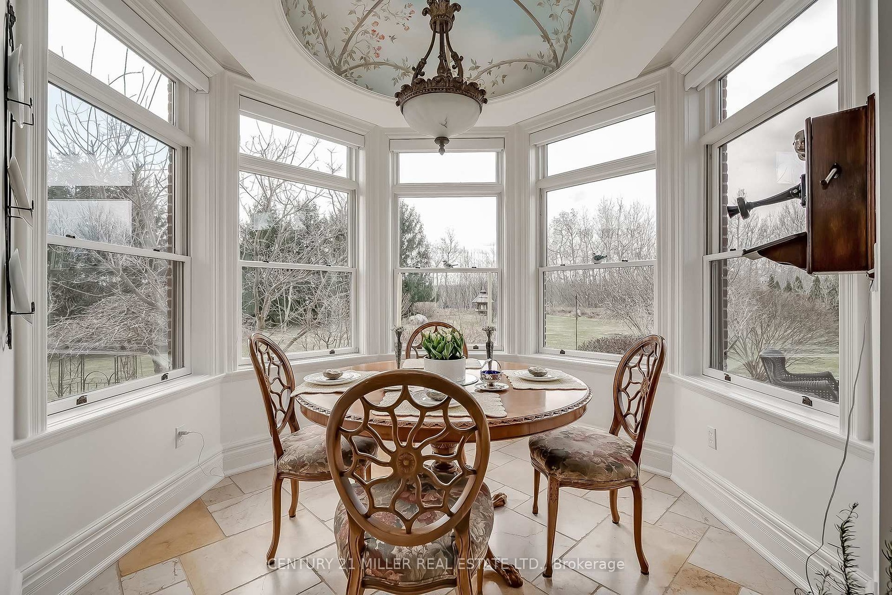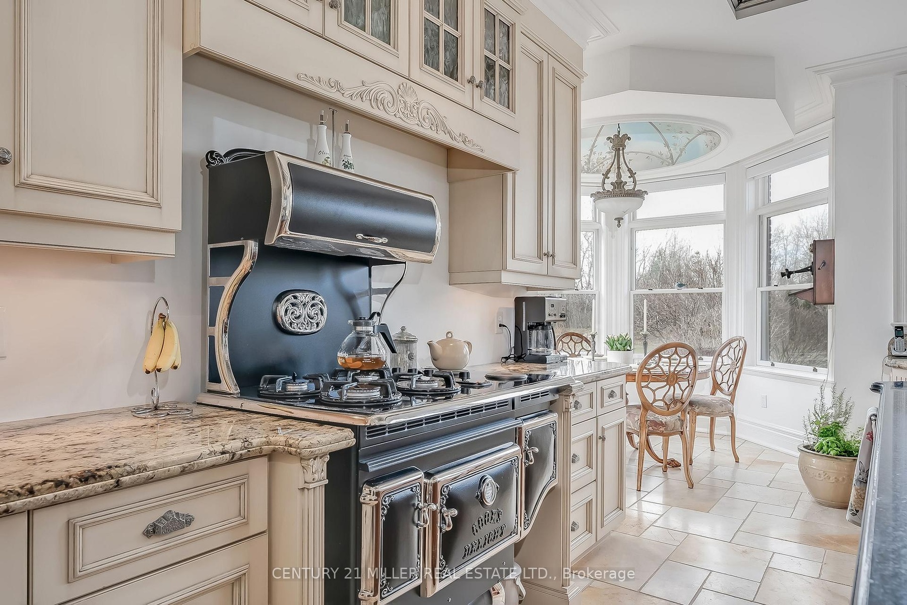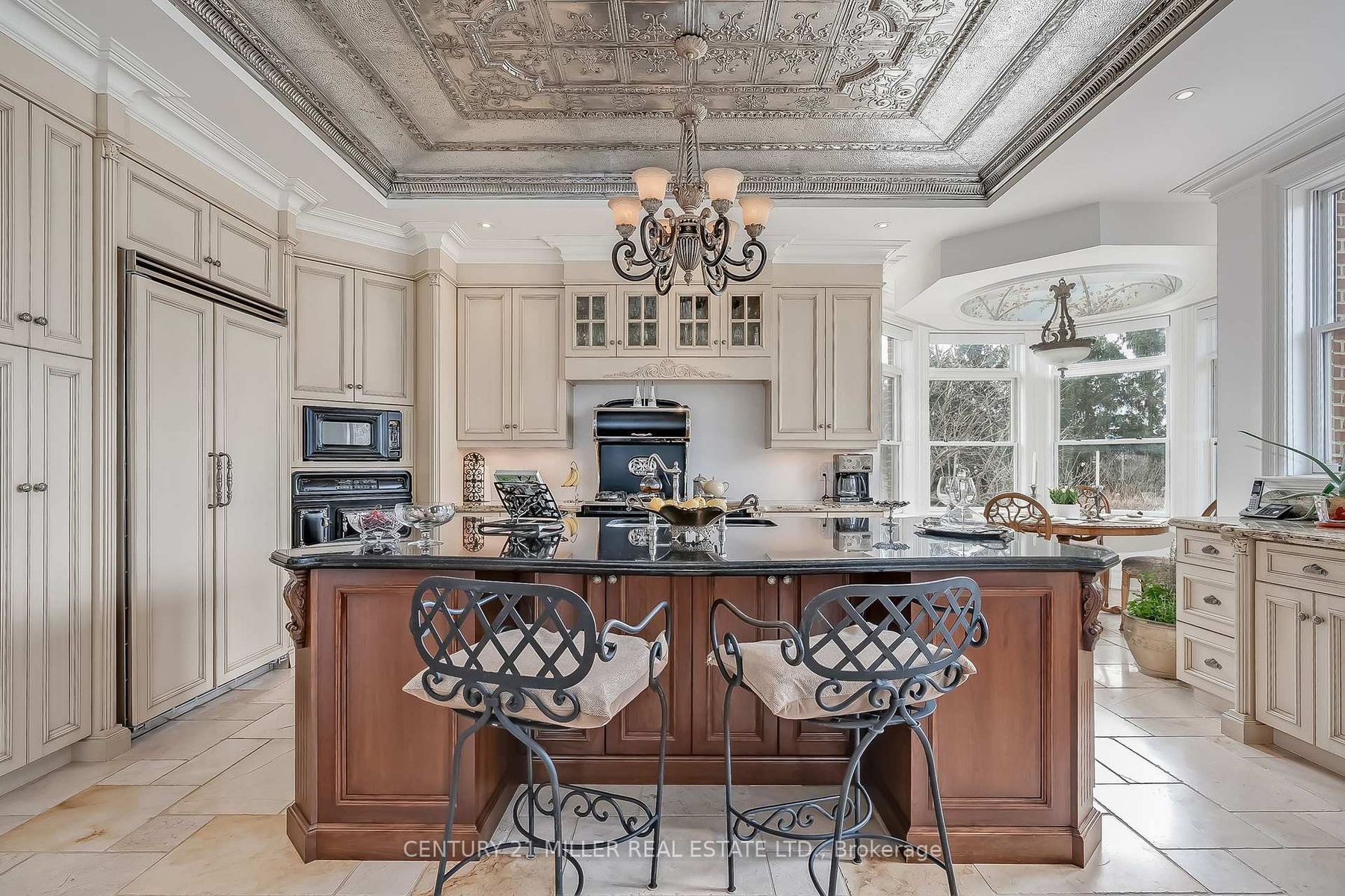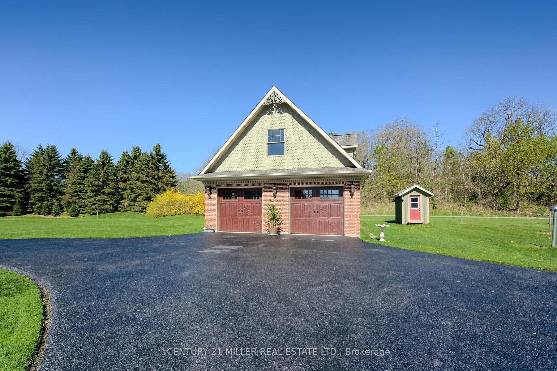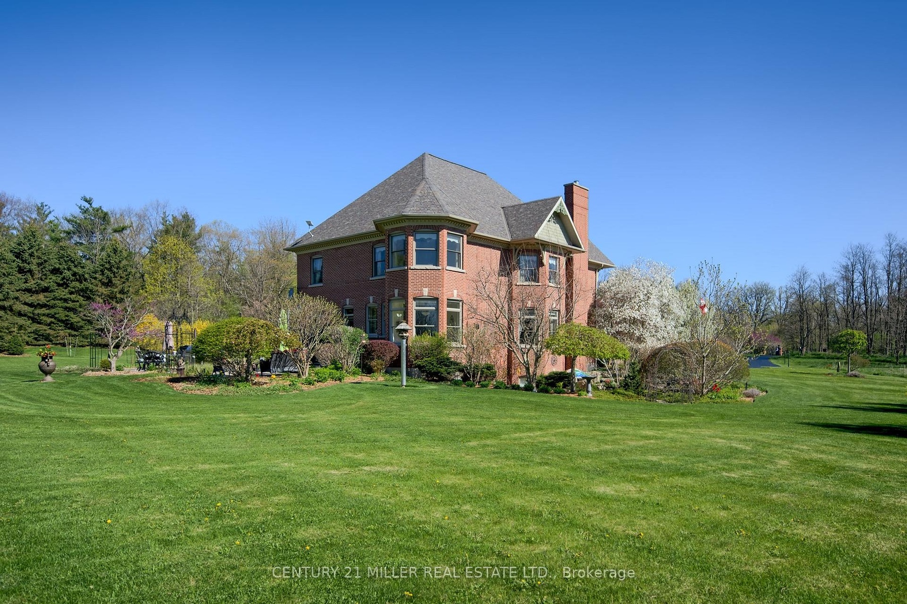 Tucked into a quiet fam neighbourhood in the quiet town of Kilbride lies a truly magnificent rural paradise, that's just a stones throw to city amenities! Imagine morning coffee on the wrap around covered front porch while you watch the kids ride bikes up the long winding driveway in perfect seclusion. No need for Muskoka when you've got this slice of heaven ! The Town of Kilbride proudly boasts one of the finest public schools in the entire Golden Horseshoe. Driving up to this stately brick Victorian style custom built home via iron gates, evokes a simpler time. This stunning two story home was designed by Bill Hicks architecture and the vision of the owners, and is a masterpiece with unique Victorian era appeal and modern amenities! The floor plan flows seamlessly from the formal front entrance with views through to the private backyard through to the heart of the home, the family room and kitchen with period appeal. A wonderful place for the family to gather and enjoy the open concept kitchen and family room with space for the whole family, while gazing out at the beautifully landscaped vistas that the backyard paradise presents with plenty of bird watching, nestled on 3.8 acres! Over 5,678 square feet of luxury living over three levels with no expense spared. Top of the line appliances, generous formal dining room, beautiful living room with fireplace, chef's kitchen open to family room. There's even a dedicated area to add an elevator for future use! Principal bedroom with spa atmosphere ensuite and two more bedrooms! Lower level with theatre room, gym, spa bathroom, music room offers something for whole family. Detached garage with room for three cars, custom car lift, workshop and 2nd level Artists' studio. Hot tub to enjoy in total seclusion!