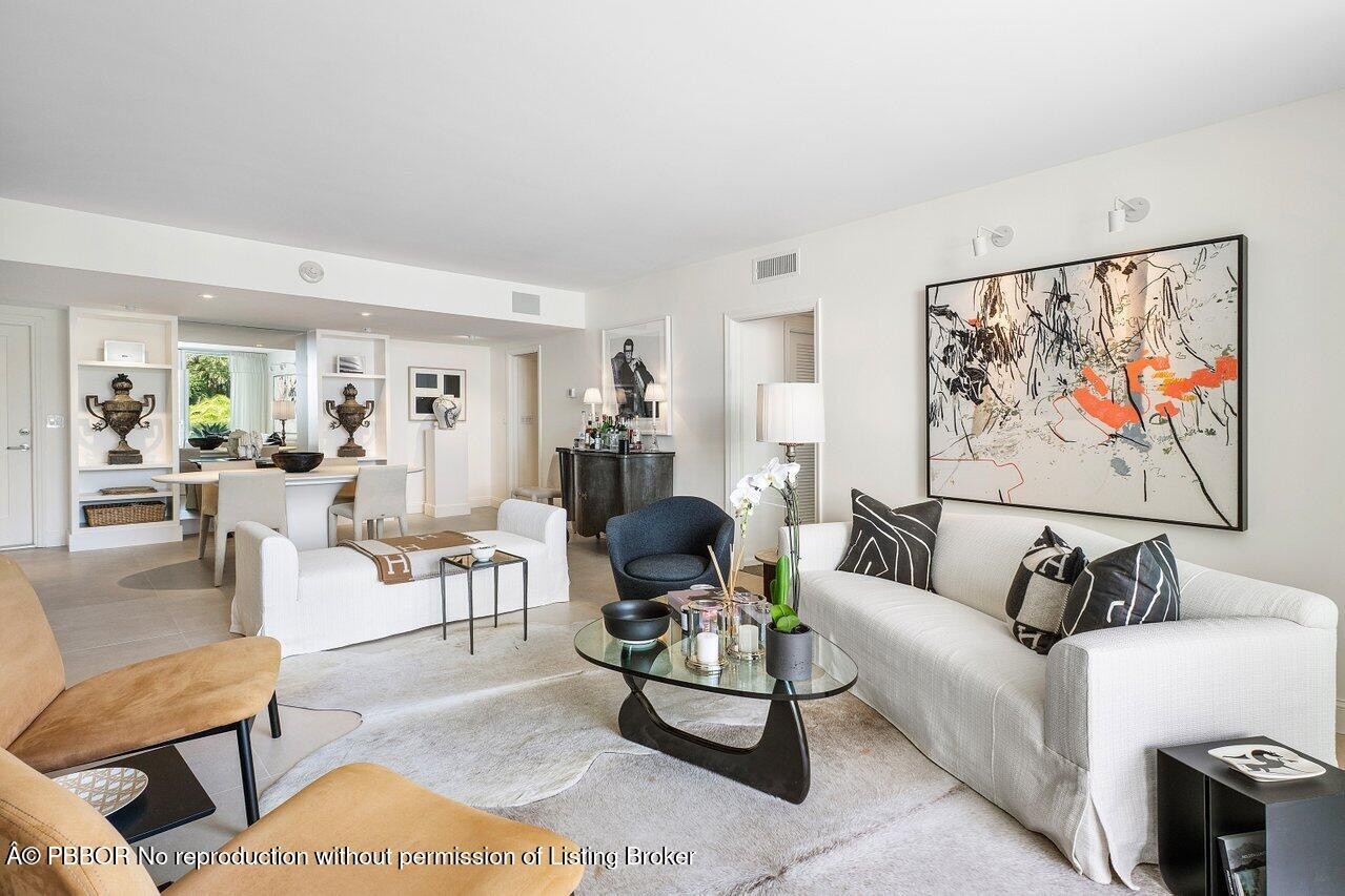Discover unparalleled luxury in this exquisite Intracoastal residence, masterfully designed by an internationally acclaimed designer and featured in prestigious publications. This meticulously renovated 2-bedroom, 2-bathroom home epitomizes sophistication and quality, offering a turnkey lifestyle with no detail overlooked. Step inside to find a beautifully furnished interior, where curated furniture and artwork enhance the refined aesthetic. The expansive living space flows seamlessly to a generous patio, perfect for enjoying the resort-style pool and capturing Florida's stunning sunrises and sunsets. An exclusive poolside cabana offers an additional retreat for relaxation. The Regency, a premier building, has undergone comprehensive renovations, meeting all Florida standards