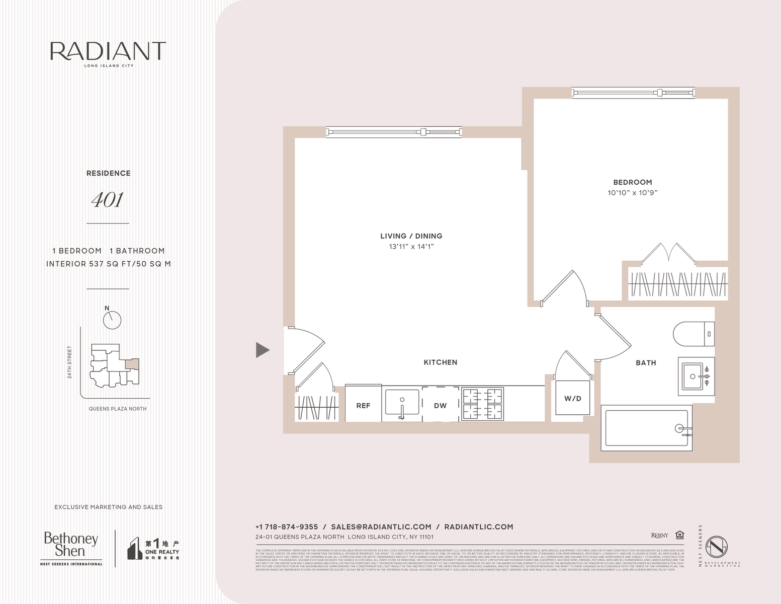 Welcome to this brand new 1-bedroom, 1-bathroom home at Radiant, a striking new luxury condominium and one of the most architecturally significant buildings to come to Long Island City. Residents enjoy elegantly designed and expertly crafted interiors that are airy, refined, and bright. The home begins with an open-concept living room, dining room, and kitchen with gorgeous hardwood floors and oversized windows with north exposure. The kitchen embodies contemporary design, blending soothing organic tones and high-end finishes without sacrificing functionality. Features include custom wood-paneled cabinetry, stylish marble countertops, a chic square tile backsplash, and fully-integrated Bosch appliances. The bedroom has a large reach-in closet and easy access to a pristine full bathroom adorned with patterned floor tiles, a custom wood-paneled vanity, an oversized vanity mirror with integrated LED lighting, radiant heated floors, and a deep tub with rain and handheld showerheads. A stacked washer/dryer completes this bespoke home. Crafted by the award-winning architect and design teams of ODA and Paris Forino, Radiant rises 19 stories and features a textured, gently curving undulating fac ̧ade interspersed with protruding terraces and setback windows. The building offers a wide selection of curated amenities for discerning lifestyle preferences. Health and wellness spaces include a tranquil Finnish sauna, basketball court, and sun-splashed fitness center with cardio and weight training equipment. There are several lounges with plush seating, including a spacious glass-enclosed rooftop club with a fully-equipped kitchen, co-working area, game room, and children’s playroom. Outdoor areas include a ping pong courtyard and a sublime rooftop terrace with a grilling station and incredible views of the Manhattan skyline. There are also karaoke/media, bicycle, and dog washing rooms to complete this exquisite collection of amenities. Situated in an emerging residential enclave in Long Island City, Radiant is moments from numerous restaurants, bars, cafes, and shops. MoMA PS1, Brooklyn Boulders, Queensbridge Park, Target, and Murray Playground are all a few blocks away. Accessible subway lines include the 7/E/R/N/W/M/F. Pets are allowed.