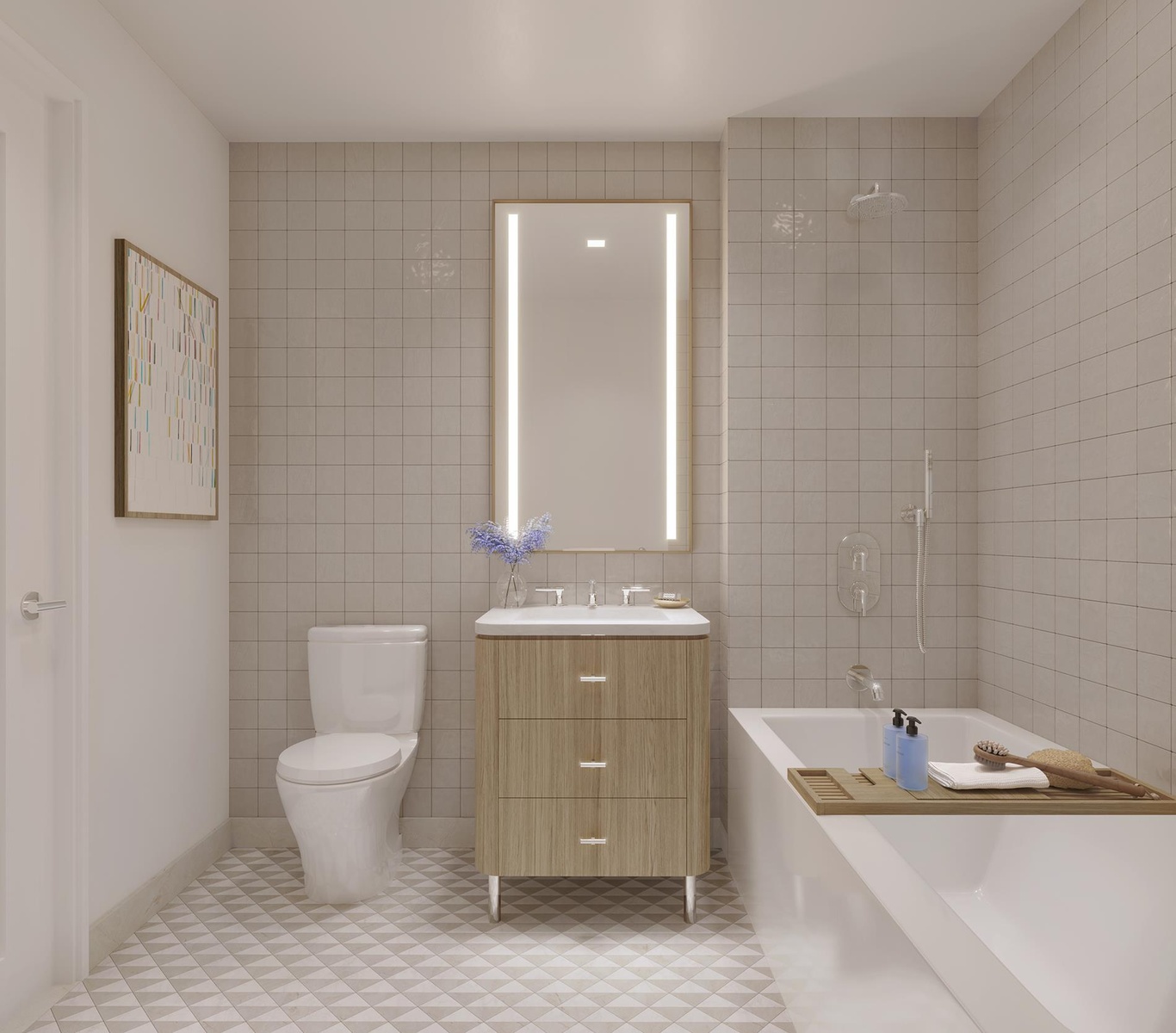 Welcome to this brand new 1-bedroom, 1-bathroom home at Radiant, a striking new luxury condominium and one of the most architecturally significant buildings to come to Long Island City. Residents enjoy elegantly designed and expertly crafted interiors that are airy, refined, and bright. The home begins with an open-concept living room, dining room, and kitchen with gorgeous hardwood floors and oversized windows with west exposure. The kitchen embodies contemporary design, blending soothing organic tones and high-end finishes without sacrificing functionality. Features include custom wood-paneled cabinetry, stylish marble countertops, a chic square tile backsplash, and fully-integrated Bosch appliances. The bedroom has a large reach-in closet and easy access to a pristine full bathroom adorned with patterned floor tiles, a custom wood-paneled vanity, an oversized vanity mirror with integrated LED lighting, radiant heated floors, and a deep tub with rain and handheld showerheads. A stacked washer/dryer completes this bespoke home. Crafted by the award-winning architect and design teams of ODA and Paris Forino, Radiant rises 19 stories and features a textured, gently curving undulating fac ̧ade interspersed with protruding terraces and setback windows. The building offers a wide selection of curated amenities for discerning lifestyle preferences. Health and wellness spaces include a tranquil Finnish sauna, basketball court, and sun-splashed fitness center with cardio and weight training equipment. There are several lounges with plush seating, including a spacious glass-enclosed rooftop club with a fully-equipped kitchen, co-working area, game room, and children’s playroom. Outdoor areas include a ping pong courtyard and a sublime rooftop terrace with a grilling station and incredible views of the Manhattan skyline. There are also karaoke/media, bicycle, and dog washing rooms to complete this exquisite collection of amenities. Situated in an emerging residential enclave in Long Island City, Radiant is moments from numerous restaurants, bars, cafes, and shops. MoMA PS1, Brooklyn Boulders, Queensbridge Park, Target, and Murray Playground are all a few blocks away. Accessible subway lines include the 7/E/R/N/W/M/F. Pets are allowed.