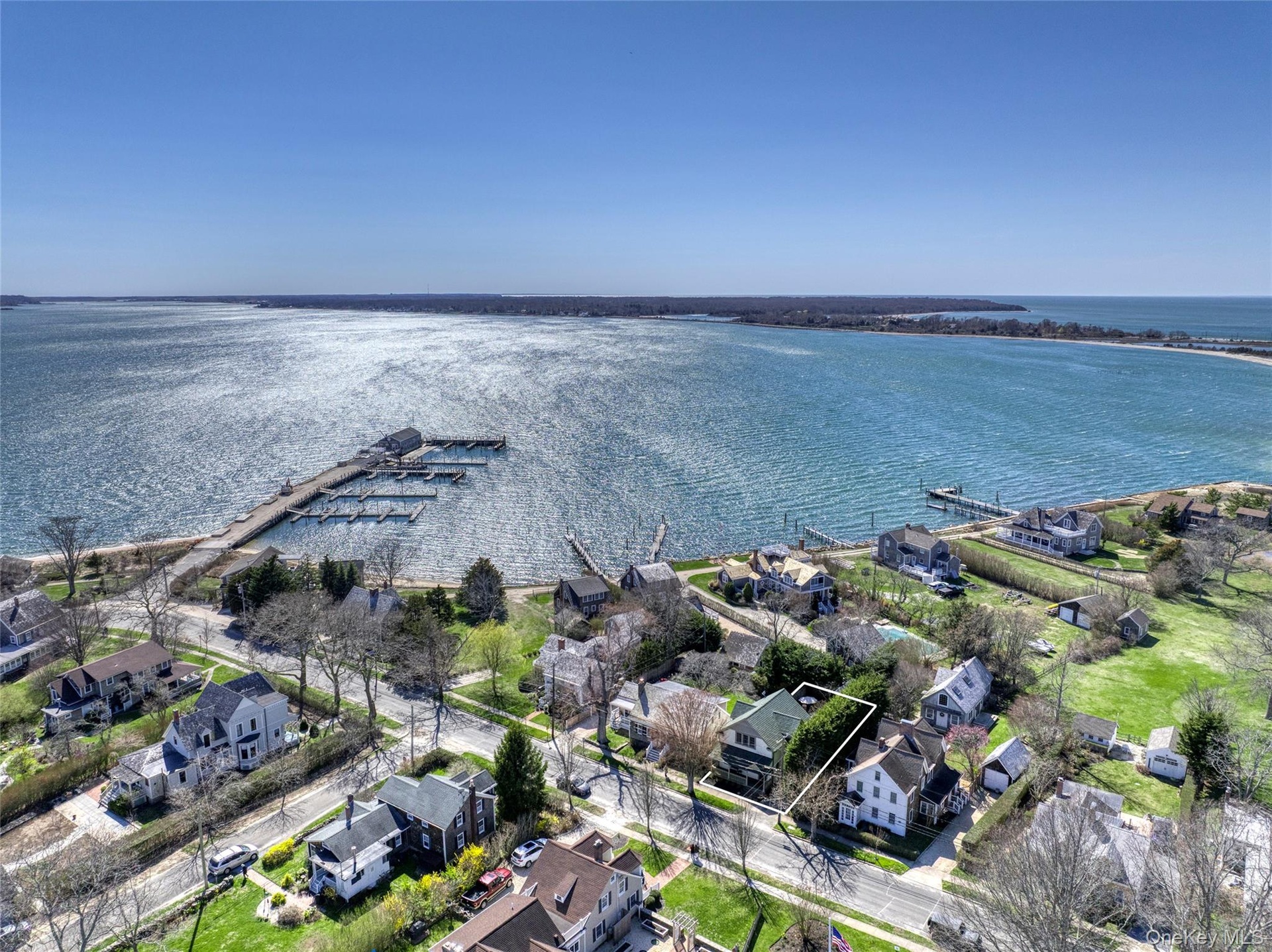Village Lane charmer located a short walk to the bay and all village amenities. Gourmet kitchen, open common space, wonderfully bright and airy. Second floor master suite with window seat, bedroom, bath, sitting room, and rear balcony. Large accessory 2-story studio. Brick patio/garden connecting house and studio for outdoor dining and entertaining.