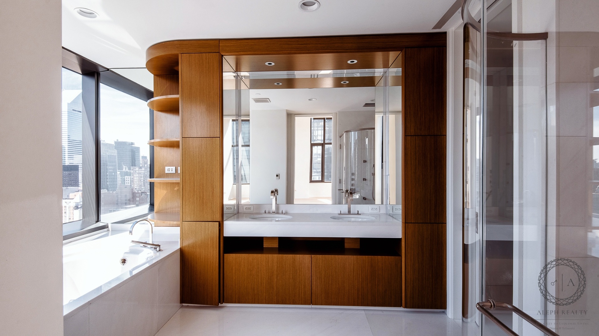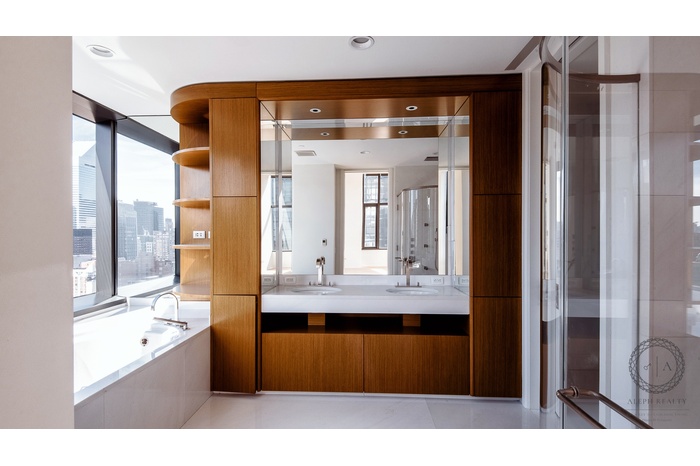 Wrapped in floor-to-ceiling glass, this luminous 2,609 sq ft home is one of only two 3-bedroom units currently available in the building—and the only one that has never been occupied. The dramatic ceiling heights, unique to only a handful of residences in the tower, elevate the already grand scale of the space and offer an unparalleled sense of volume and light.