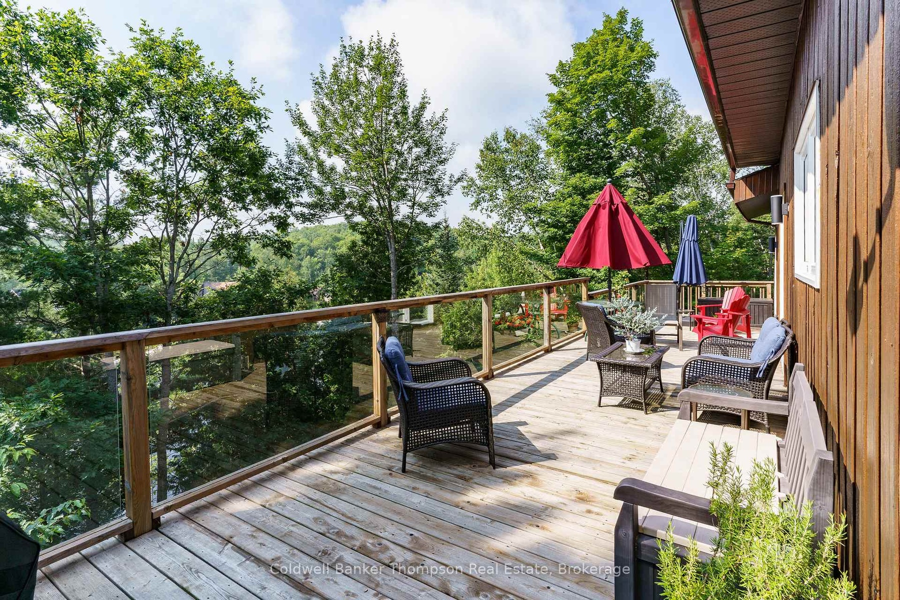 Year round living enjoyment in this parklike setting, 190 feet of natural canadian shield deep water shoreline. Southern exposure. Lift dock. Home was extensively updated in 2013, custom kitchen to please the chef in the family. Enjoy the open concept living are, hardwood floors, propane fireplace in sunken living room, and walkout to huge entertainment deck overlooking Doe Lake. Primary bedroom has his and her closets and private deck. Custom bath and 2 additional bedrooms on main level. Fully finished lower level, additional bath, laundry room, recreation room and 2nd propane fireplace. Generac and central air. NEW furnace in fall of 2024. Plans for 2025 include new back splash for kitchen, and railing on walkway to the lake.