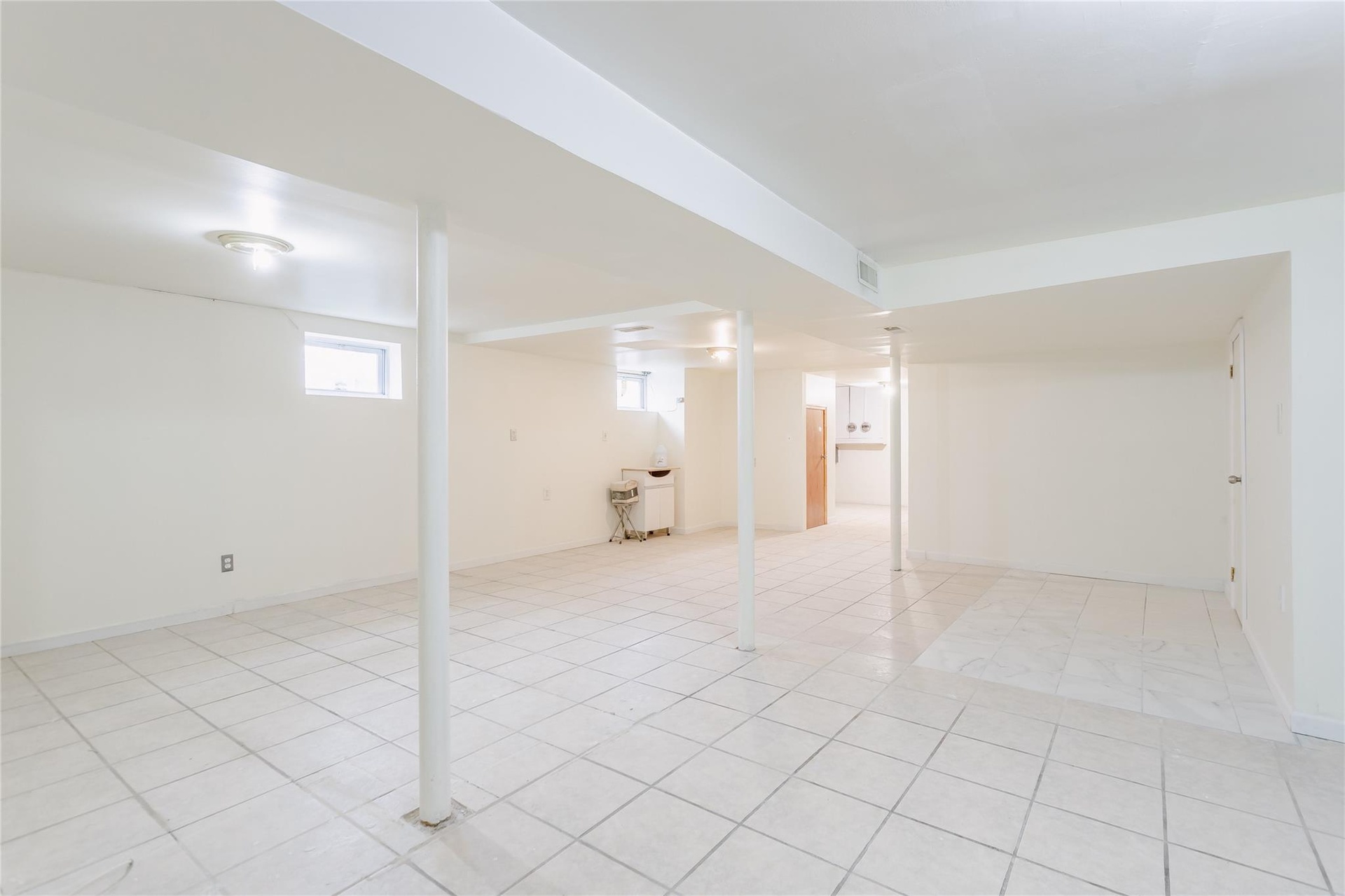- Finished below grade area with visible vents, baseboards, and light tile patterned floors