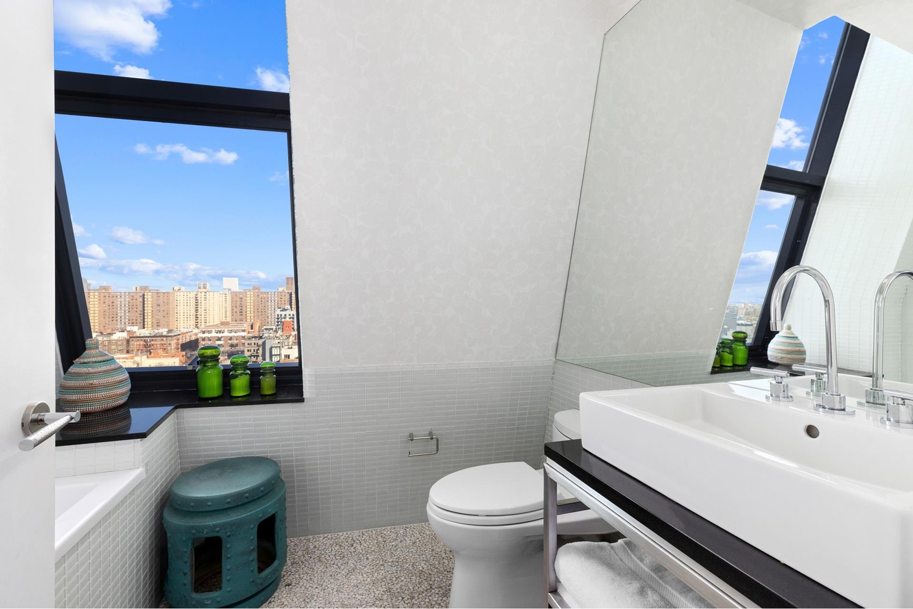 Views, Views, Views. This chic, full floor home, located in the distinctive BLUE condominium, boasts breathtaking Manhattan views from four exposures, exquisite design and abundant natural light all day long.
