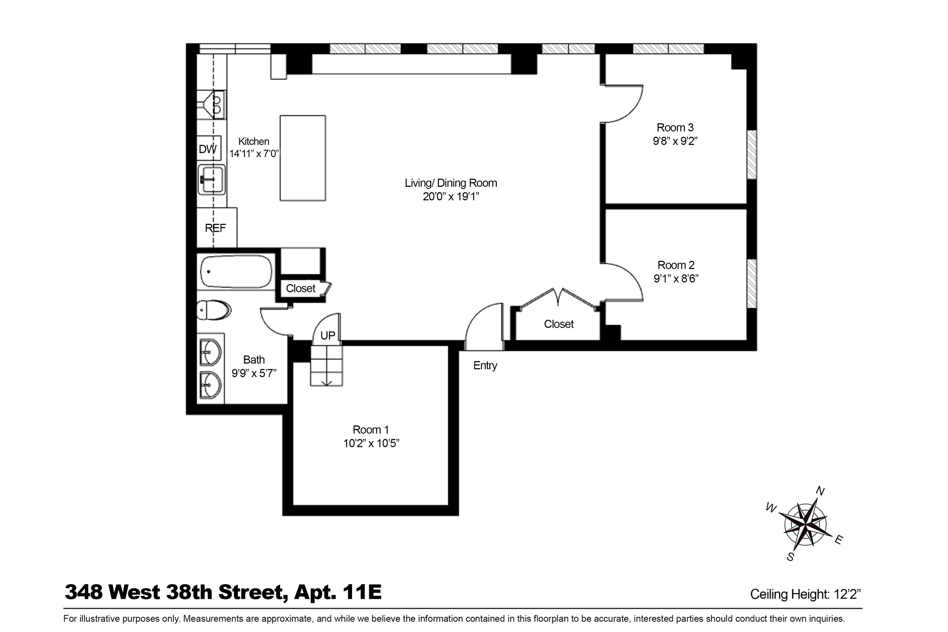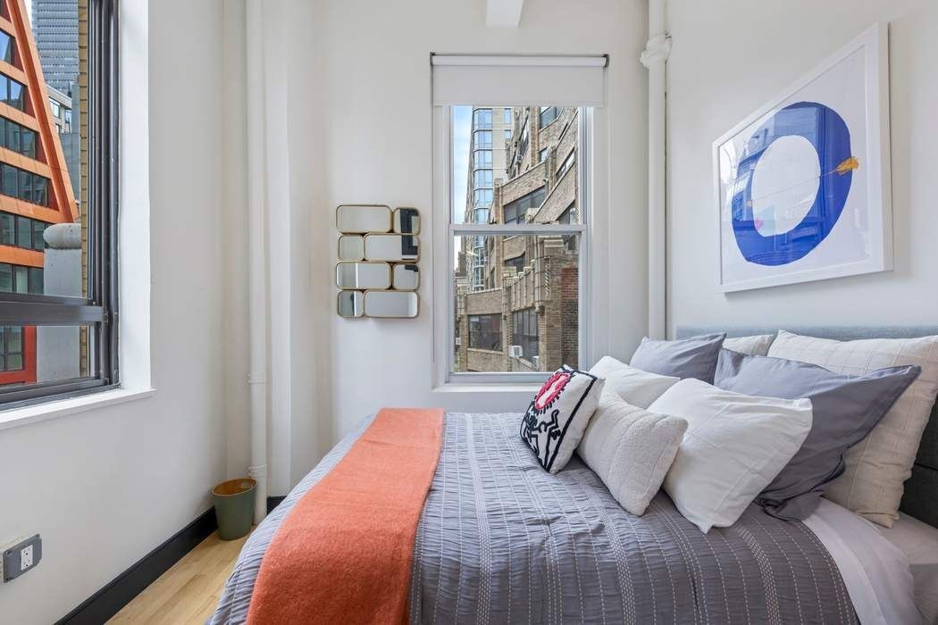 This spacious, light-flooded loft with soaring 12’2” ceilings offers the perfect balance of tranquil living in the heart of the bustling Hudson Yards neighborhood. Enjoy vast city views from the massive 8-foot windows featuring North and East exposures. Three nicely proportioned sleeping areas allow for serene privacy and peaceful living - the apartment is perfect for those seeking the utmost flexibility for sleeping, home office, and guest bedroom needs.