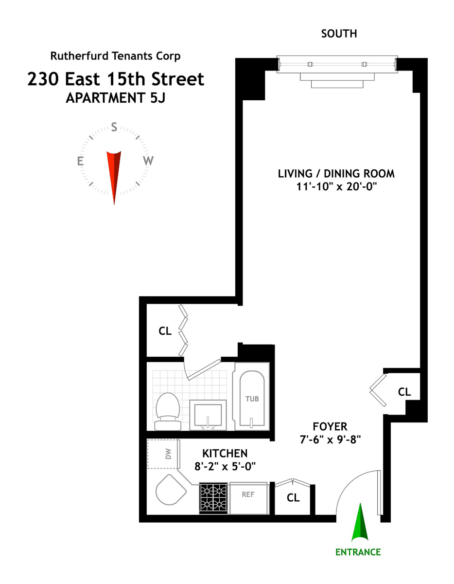Welcome to Apartment 5J at 230 East 15th Street, a sunlit, south facing quiet studio offering tasteful updates, generous storage, and a flexible layout in the historic Gramercy Park neighborhood.