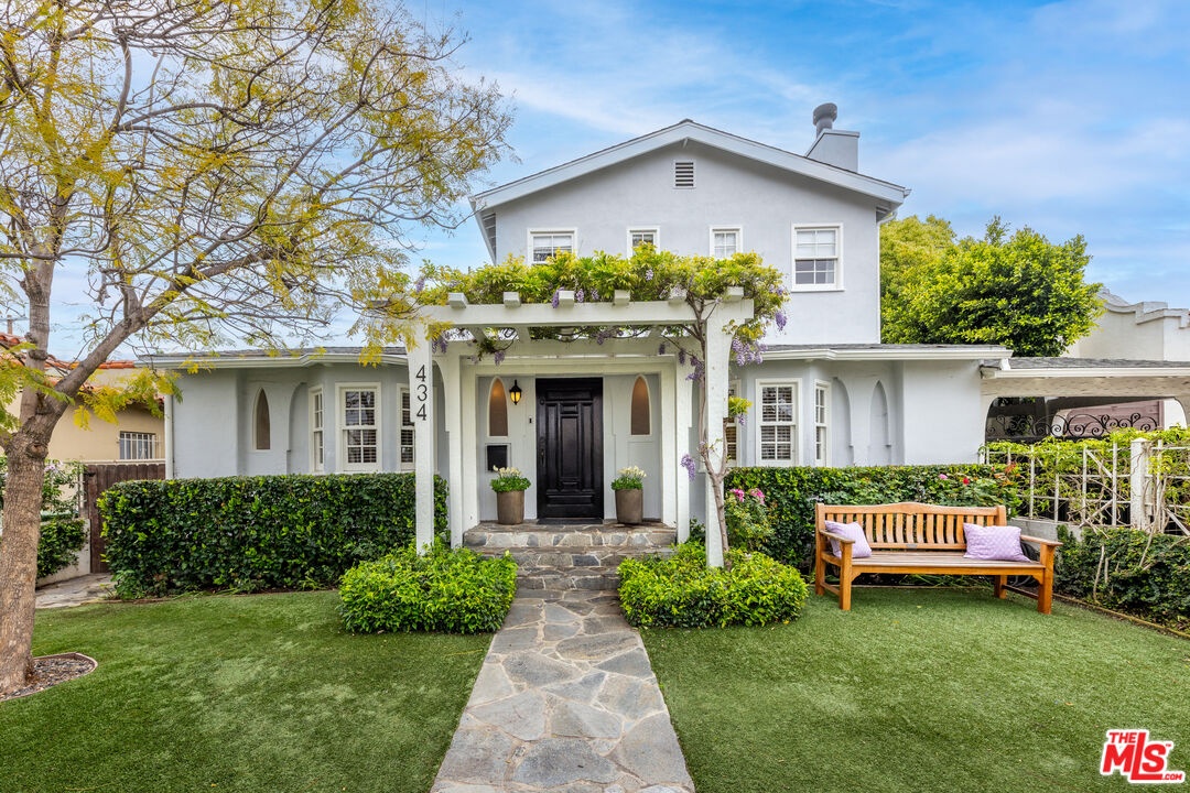 HUGE $455,000 PRICE REDUCTION!! Elegant, English-Styled Home in the heart of Larchmont Village. Welcomed by gated, beautifully landscaped gardens is this RARE, turnkey, 5-bedroom, 5-bath, incredibly charming property on the market for the first time in 17 years. The current family has added tremendous square footage and updated the beauty and the systems of the home. Enter to a foyer, cozy living room w/fireplace, and small reading or music room, pass through to the formal living room and ample kitchen with a center island, stainless steel appliances, a coffee station, breakfast nook, walk-in pantry, butler pantry, and laundry closet. Step down to the added den, ideal for a playroom, theater, or casual indoor-outdoor flex space with an attached full bath. Downstairs are two (2) ensuite bedrooms. Upstairs are two additional bedrooms, which share a hall bath. The spacious primary suite has a separate bedroom and sitting area. It also features an oversized walk-in closet, a spacious bathroom with dual vanities, and a separate tub and shower. The guest house is perfect for a sixth bedroom/bath, music studio, home office, or gym! The spacious backyard is great for entertaining, and the lawn has been converted to low-maintenance turf. This could be your forever home.