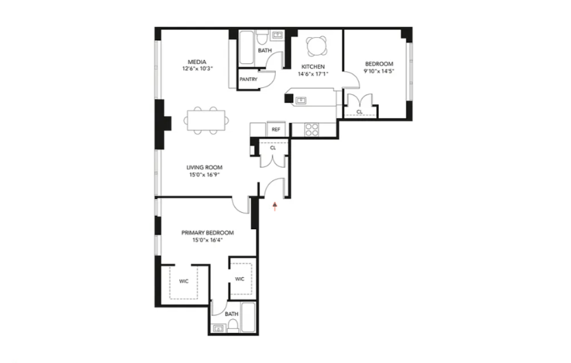 The renovated kitchen opens up into the great room ideal for entertaining. Modern range, refrigerator, dishwasher, wine refrigerator and oversize sink adds to the sleek kitchen cabinetry. The primary suite is very generously proportioned and offers two walk-in closets, and an en-suite bathroom. The second bedroom faces West and offers tree covered views. The apartment also features beautiful hardwood floors throughout, high ceilings, and views from every room.