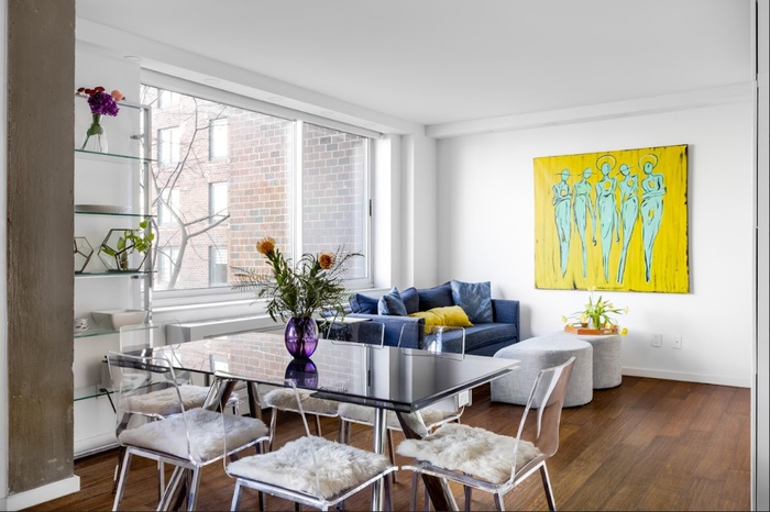 This residence includes an oversize entertainment space in a full-service building on a tree-lined street. Located one block from the Hudson River and it's amazing promenade, this apartment offers cross ventilation from two open city and sky views, East and West.