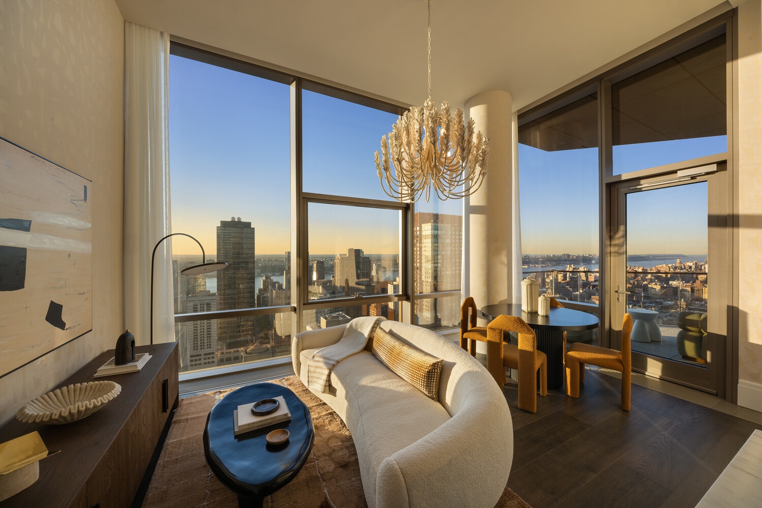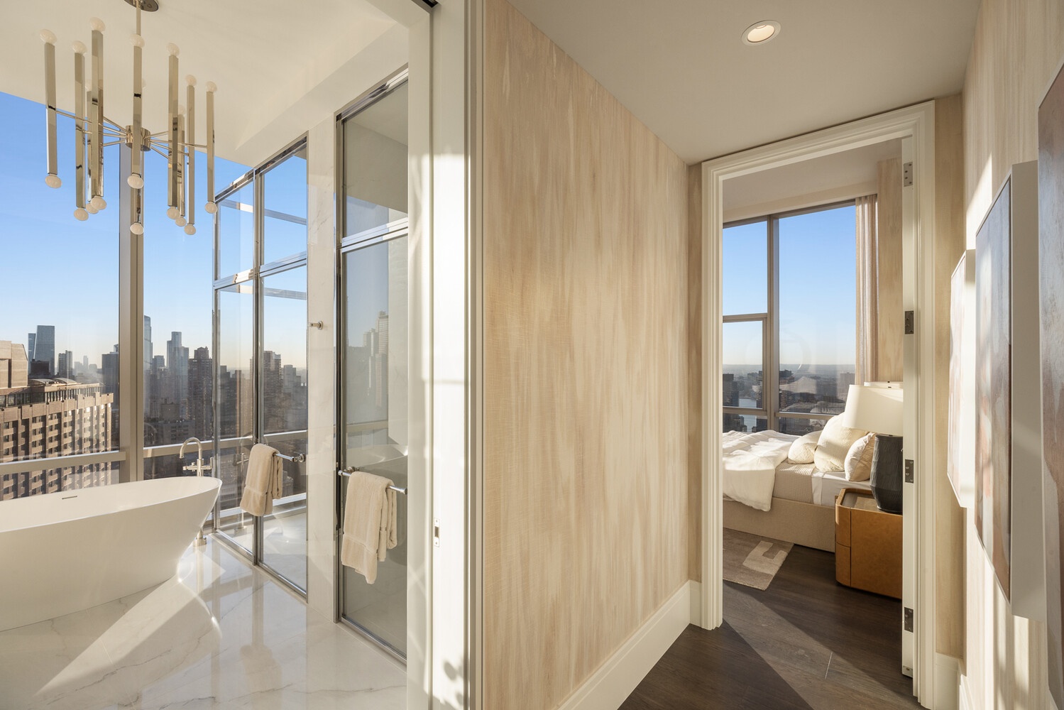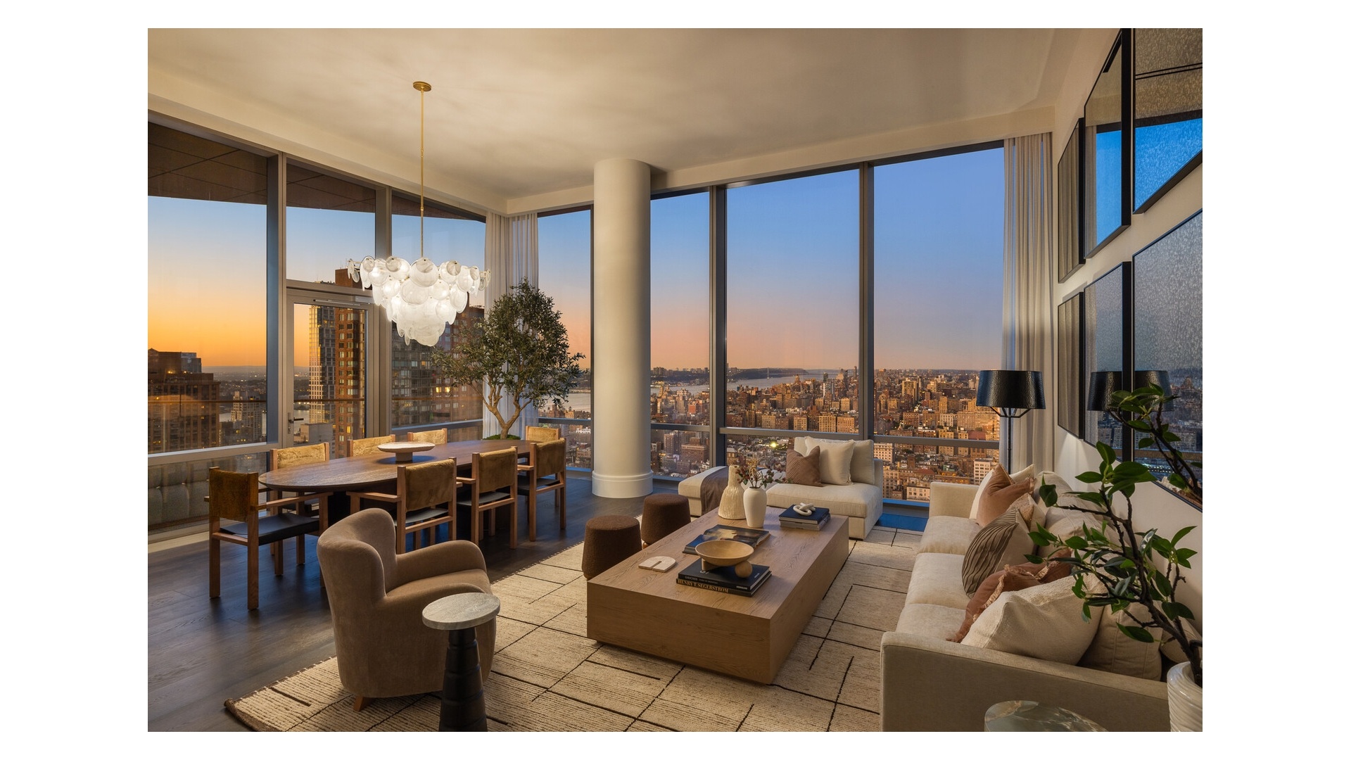 Tower residence 41W is a gracious 2,816 square-foot, 3-bedroom, 3.5-bathroom home with a spectacular private loggia overlooking The Hudson River and Central Park. Walls of glass and 13'6" soaring ceilings set the stage for unforgettable Park, River and Skyline views.
