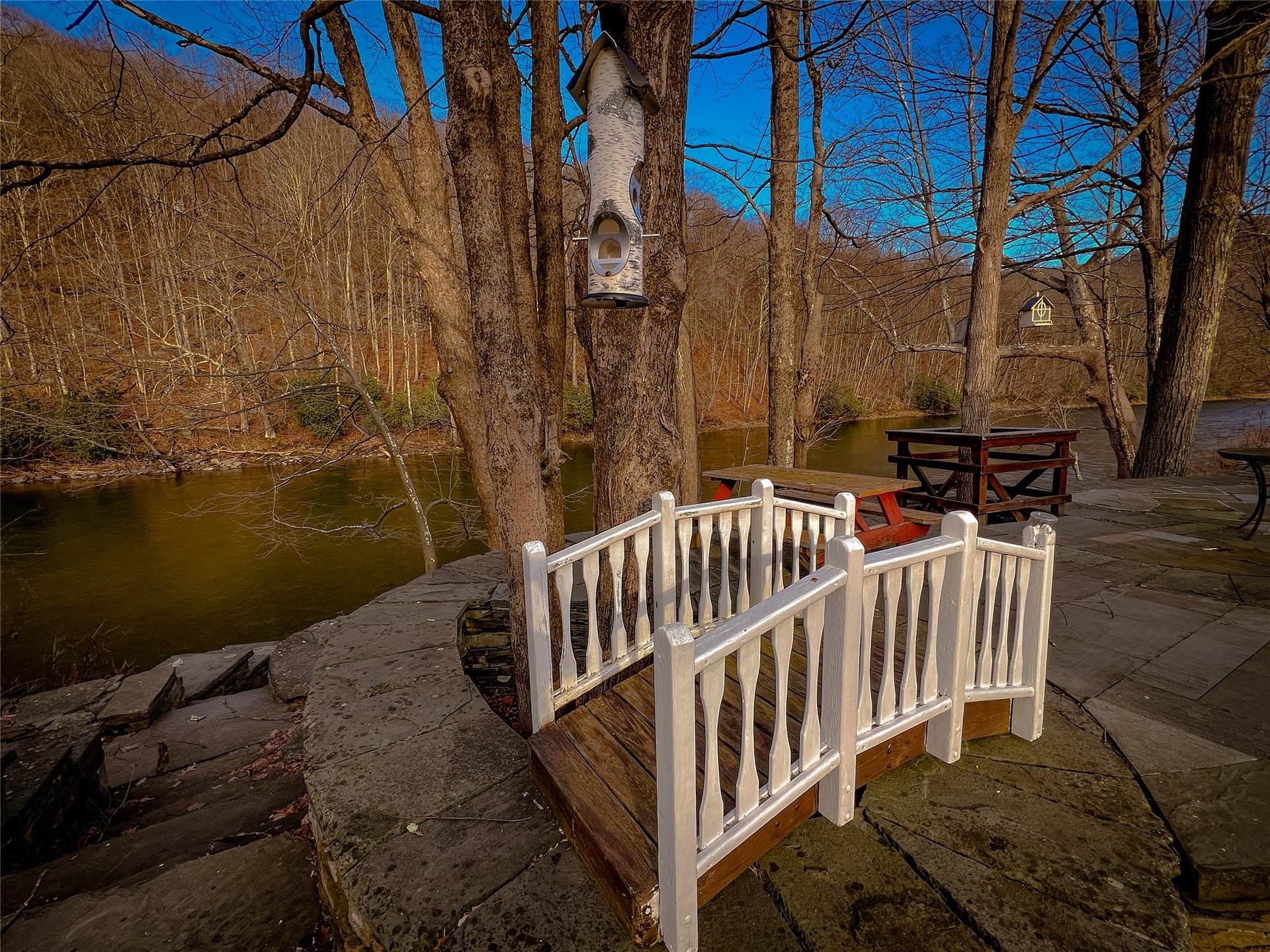 The Lower Mountain Pool of the Beaverkill River is a section of river that certainly holds some large wild fish, and a few tales as well. This stretch of river has some very nice deep pools and runs and can be a challenge to access, unless of course it's just a couple of bluestone steps out your back yard! The stonework itself is a beautiful blend of art and engineering ensuring the space is equal parts both form and function.