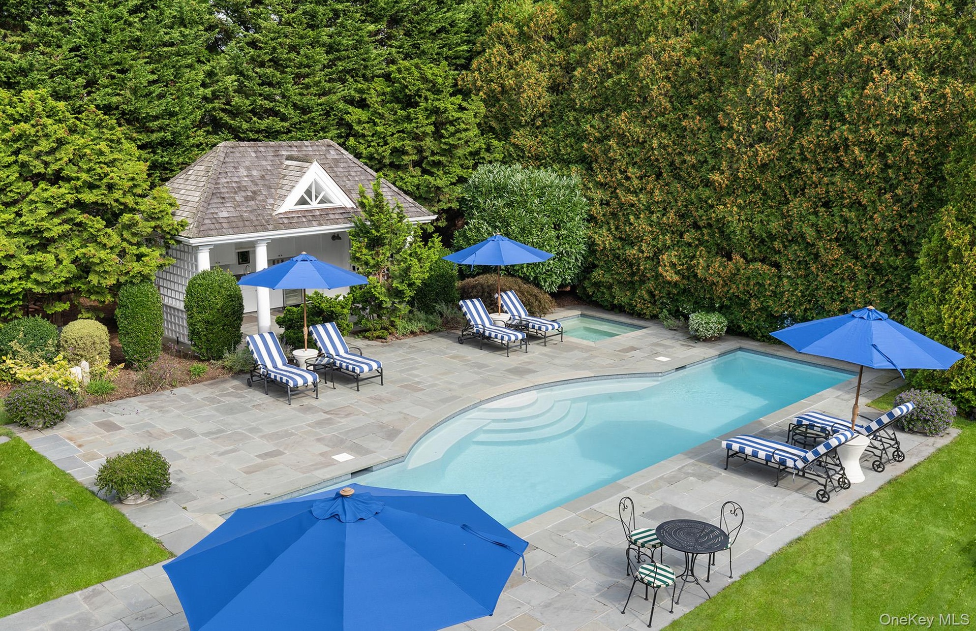 In the world class destination of the Hamptons is this classic gabled traditional on over 1.3 gorgeous acres in the coveted Georgica enclave of East Hampton Village offering a fortunate tenant a rare opportunity. Newly designer decorated, painted and floors done, this South of the highway jewel should not be overlooked. With elements of size and construction that could not be duplicated again on this parcel, a 7-bedroom, 8,000 SF+/-, residence, on 3 levels of finely articulated living space, down a long driveway, and sequestered behind a gated entry, brings the combination of masterful construction, exquisite finishes, copious amenities and a sensible floor plan that has become the hallmark of fine East End design. Newly refinished oak floors welcome all into a grand entrance that fans out to find the living room and formal dining room, both warmed by their own fireplaces. The expansive kitchen and family room is bolstered by an additional outdoor kitchen making both intimate meals and grand entertaining effortless. A three-season sunroom adds additional space to spread out and relax while enjoying views of the verdant property. Upstairs the primary wing with private balcony offers a large sleeping chamber with fireplace, luxurious bath and generous closets. Three additional ensuite bedrooms, including one with fireplace, and a sitting/TV room or office complete the second floor. The finished lower level offers gym, billiards lounge, media room, powder room and two additional bedrooms sharing a full bath. Outside major patios with ample room for couches, chairs and alfresco dining look out to the manicured lawn, pool with hot tub and cabana, while the sunken all weather tennis court is just beyond sheltered behind mature trees. Above the semi attached 2 car garage is a complete studio with full bath, perfect for the weekend overflow while a dedicated pool bath and laundry is built below. A professional half court invites all to practice their free throws at the end of an expanded parking court. Additional features include Sonos inside & out, public gas and water, security system, Wi-Fi with multiple boosters throughout, and irrigation. Extensive landscaping, specimen trees, colorful gardens and perimeter plantings have created an estate like setting only minutes to East Hampton Airport, Georgica Beach and East Hampton Village. This impeccable beauty should not be missed. This property is available for the full summer season 2026 or on a monthly basis. Contact for rates and availability.