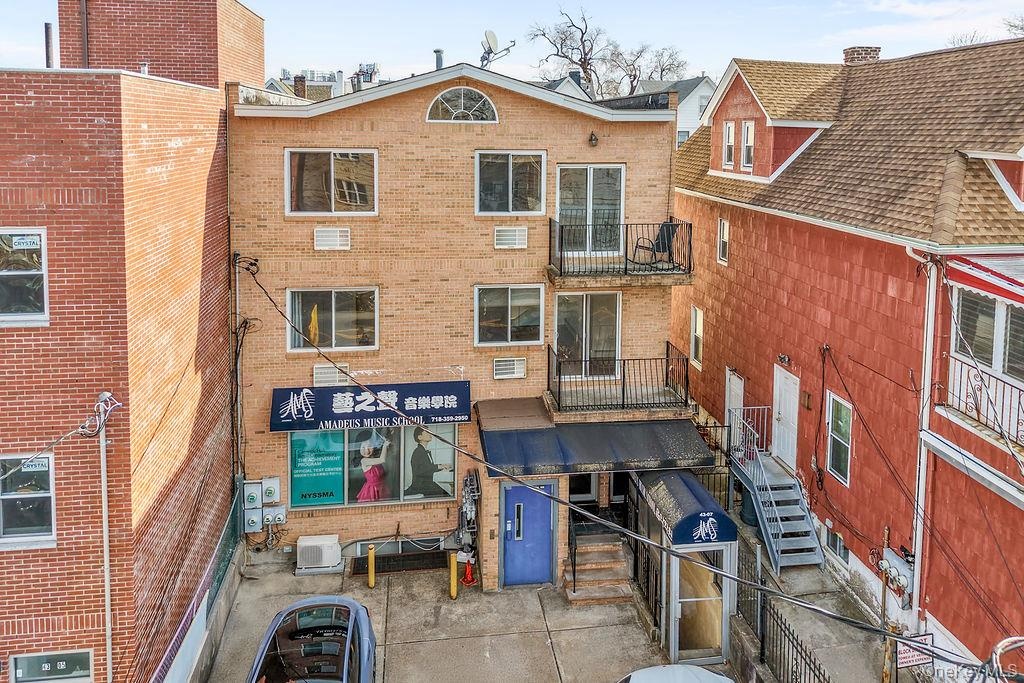 Mixed use residential and commercial building in heart of Koreatown of Flushing. Huge building size of (30x56) with 3 parking spaces and large basement (1680 sq ft) with street level entrance and elevator access for storage and commercial usage . Currently ground floor (1680 sq ft) leased to Music school. 2nd and 3rd floor has 4 separate apartment varying from 1-3 bedrooms each. Zone R5B, C2-2. Potential for doctor's office, church, physical therapy, acupuncture, day care yoga and pilates etc. Walk to LIRR Broadway station and shops and bus stops along Northern Blvd. High potential return investment.