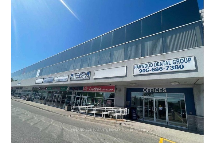 Utilities Included In The Additional Rent. Subject Property Is Located At A High Traffic Intersection - Harwood And Rossland Road. Steps Away From 2 Ajax High Schools. Highway #401 Interchange Just Minutes Away. Ample Parking With Building And Pylon Signage Available. Includes Large Windows With A Lot Of Natural Light. Satisfactory Credit Check To The Landlord Required