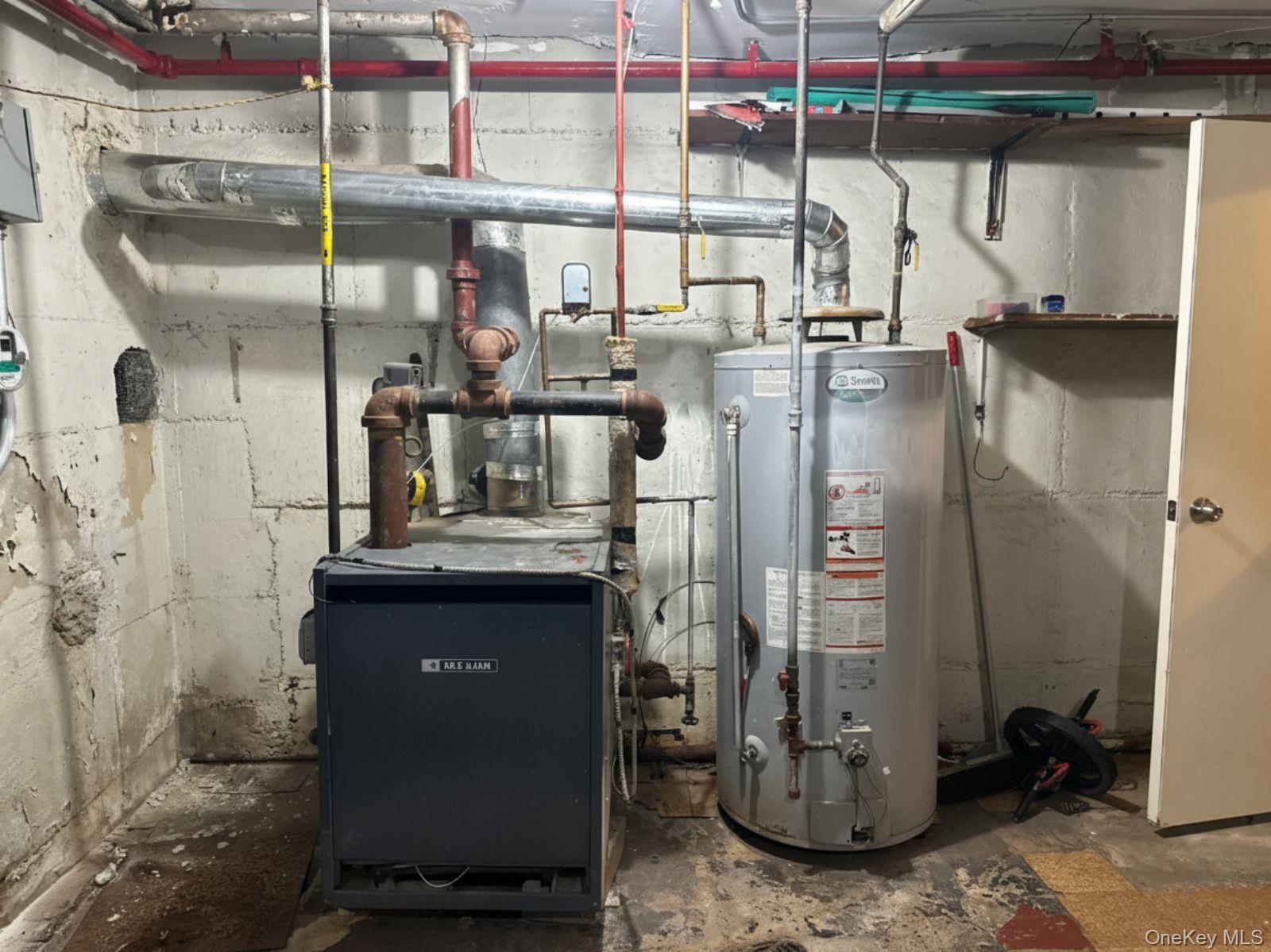 - Below grade area with electric panel, a workshop area, gas water heater, and a heating unit