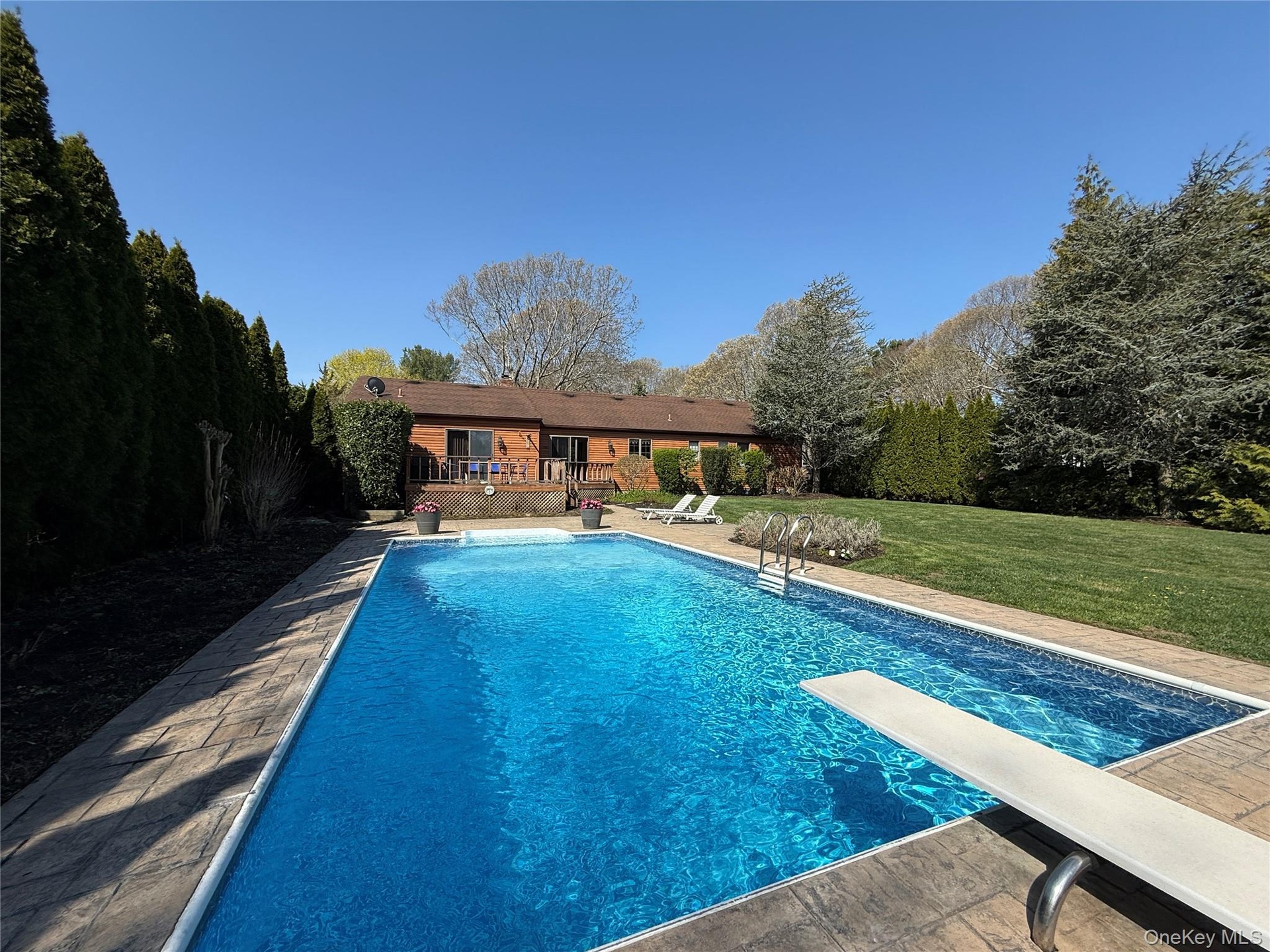 - Pool with a diving board and a yard