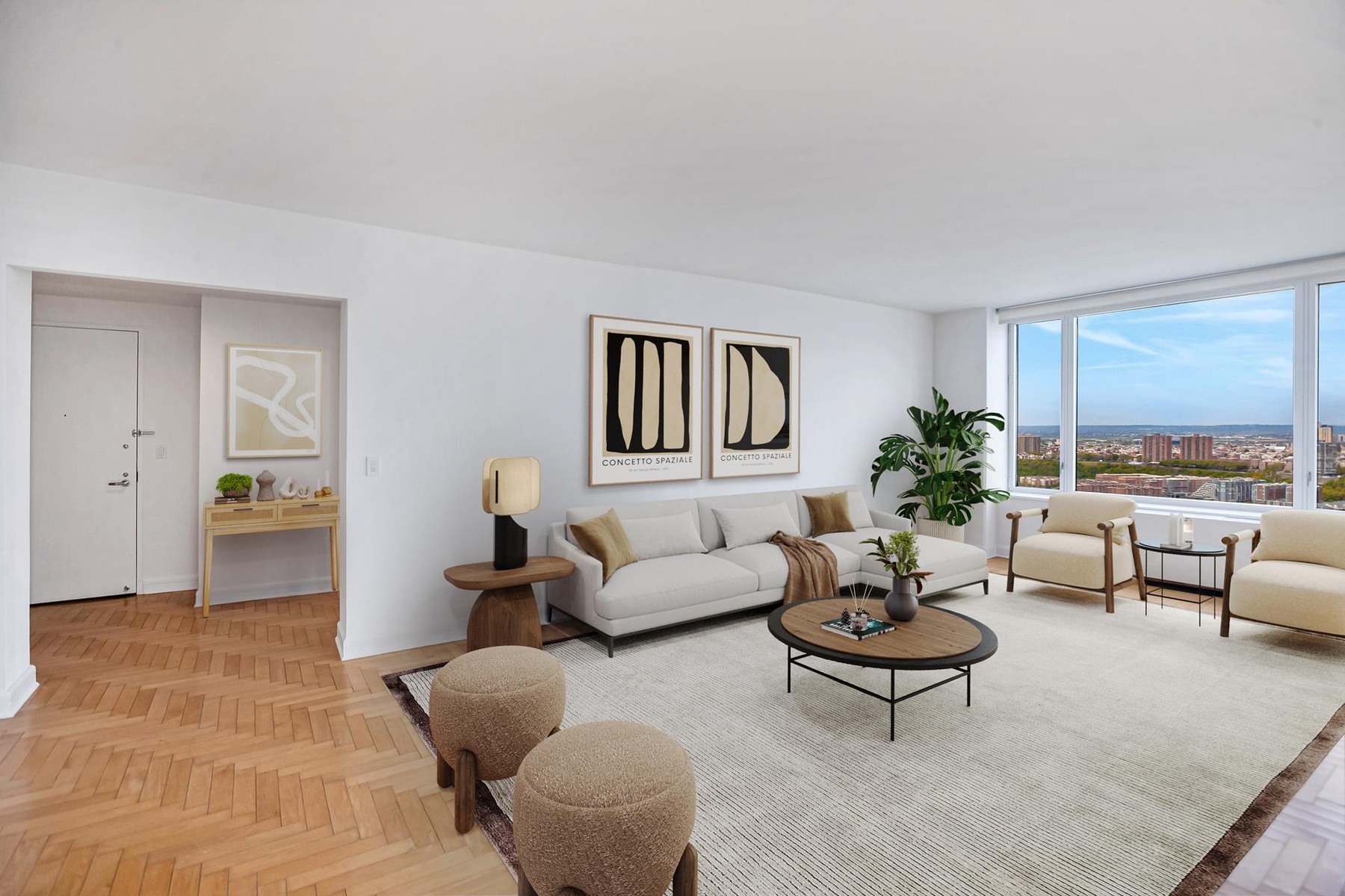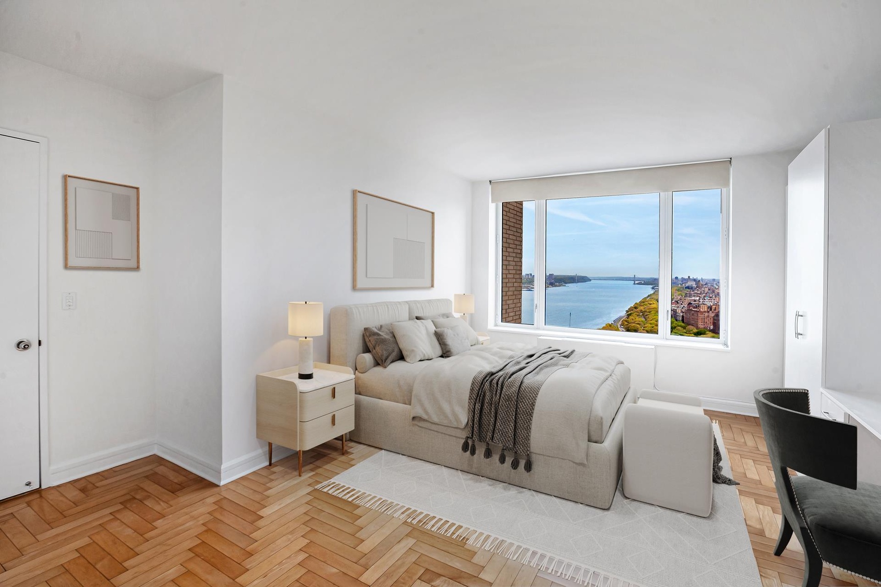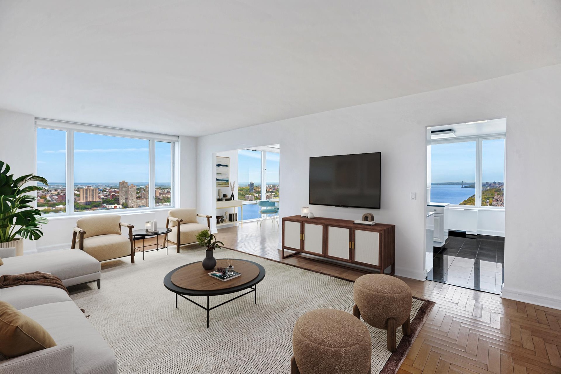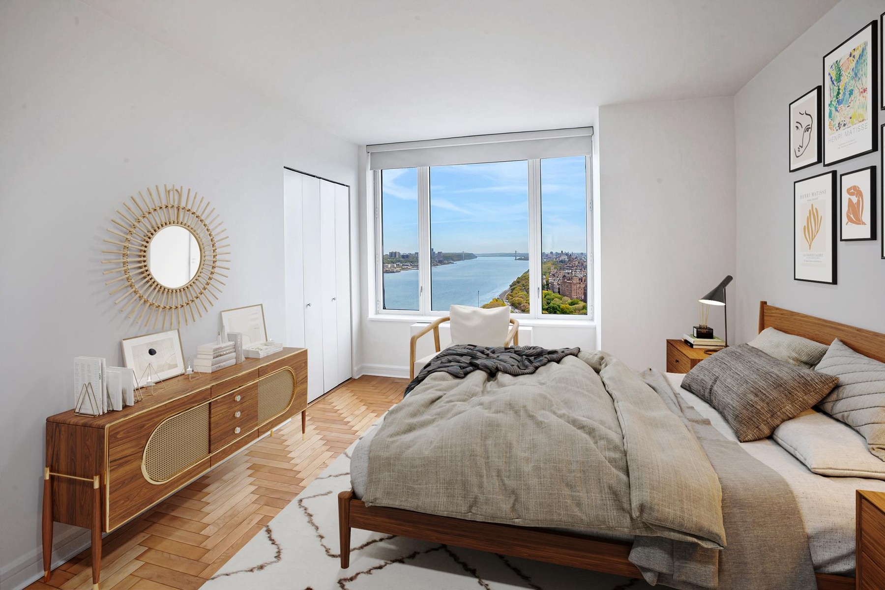 Enjoy sensational views from this 43rd-floor home. This grand 3-bedroom, 3-bathroom home offers spectacular views of the Hudson River, Riverside Park, the Upper West Side, and even the iconic George Washington Bridge! This corner home receives a wonderful balance of light from the north and west exposures. Every room has amazing views through oversized picture windows. Enjoy dining and cooking while overlooking the GW Bridge with picturesque sunsets. Overall, there is a wonderful flow in the layout, which is ideally suited for entertaining. Apartment features: a gracious entry foyer, spacious living room, formal dining room, windowed eat-in kitchen with granite countertops and custom cabinets, beautiful light hardwood floors, abundant closet space, and convenient vented washer/dryer. The apartment also comes with a private storage bin. Building features include a 24-hour-attended lobby, a fully staffed health club, an indoor pool, a kid's playroom, a garden/courtyard, a billiards room, bicycle storage, a garage, and a waterfront park with an adjoining Pier 1 and Pier I Cafe. The building is conveniently located, just steps away from the Hudson River, Riverside Park, Lincoln Center, Time Warner shopping, and wonderful restaurants. You are welcome to contact me to arrange a private viewing. Note: Real estate taxes reflect non-primary residency!