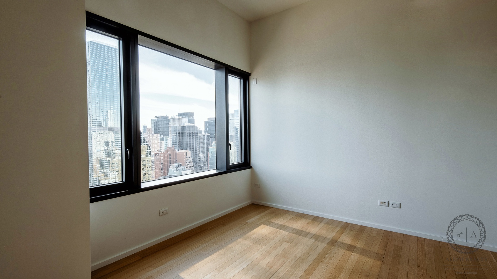 Wrapped in floor-to-ceiling glass, this luminous 2,609 sq ft home is one of only two 3-bedroom units currently available in the building—and the only one that has never been occupied. The dramatic ceiling heights, unique to only a handful of residences in the tower, elevate the already grand scale of the space and offer an unparalleled sense of volume and light.
