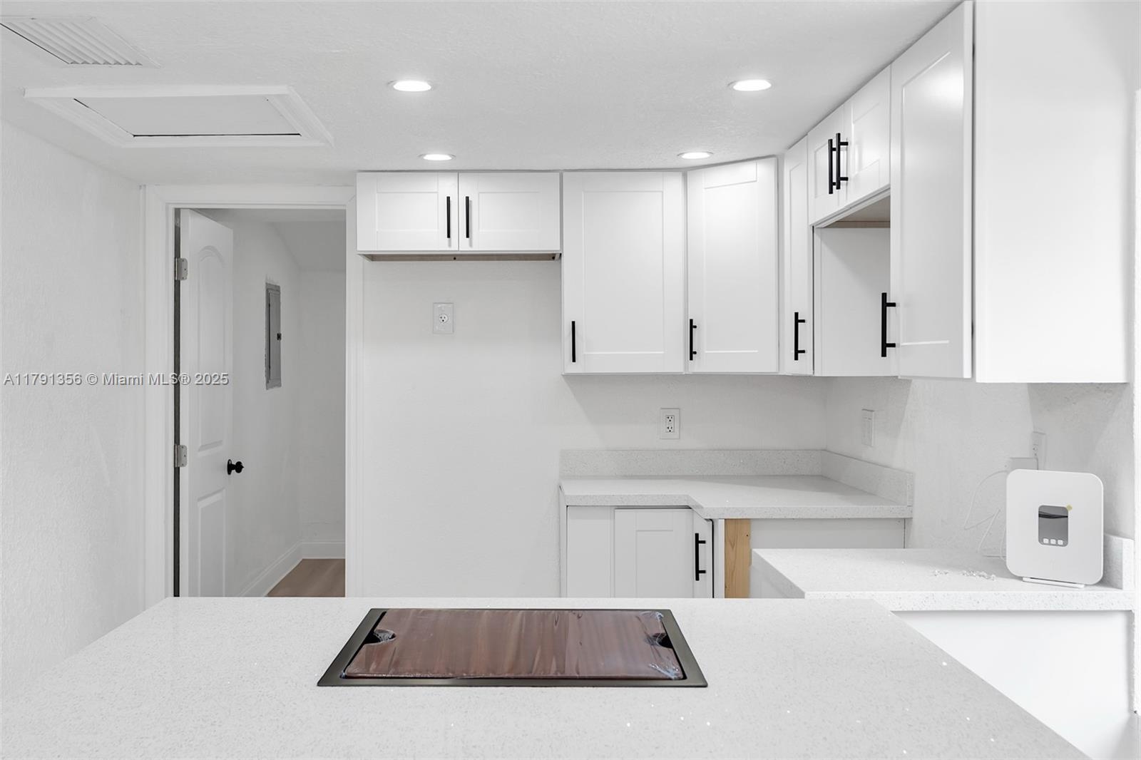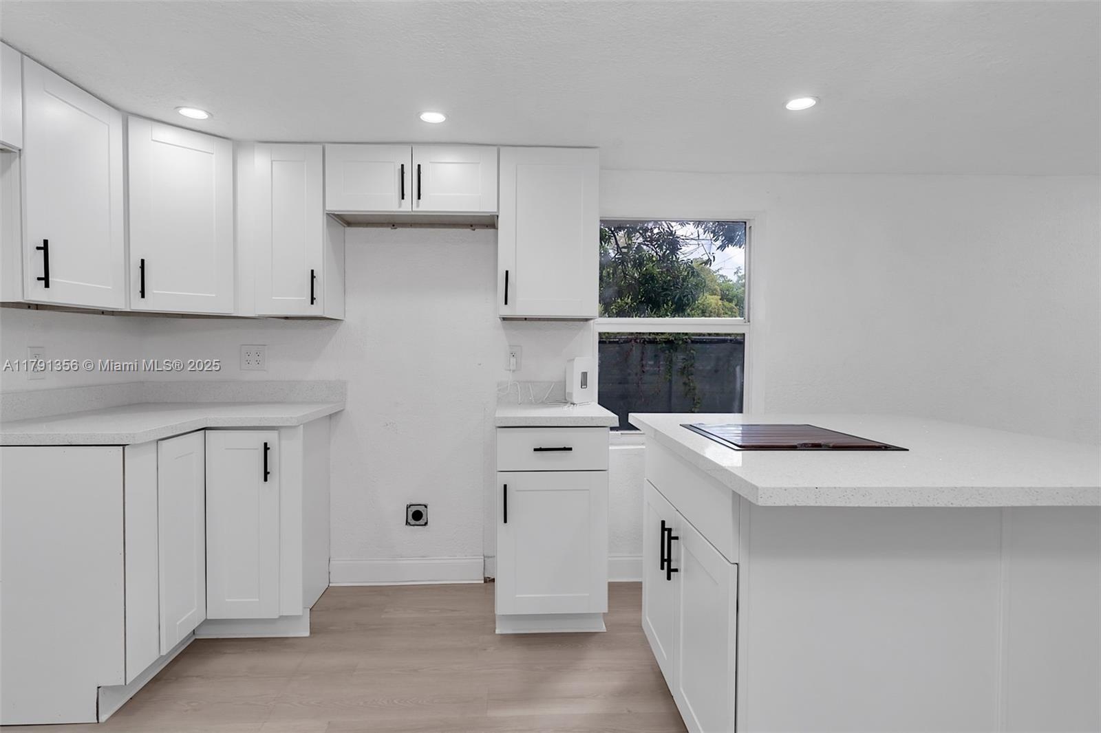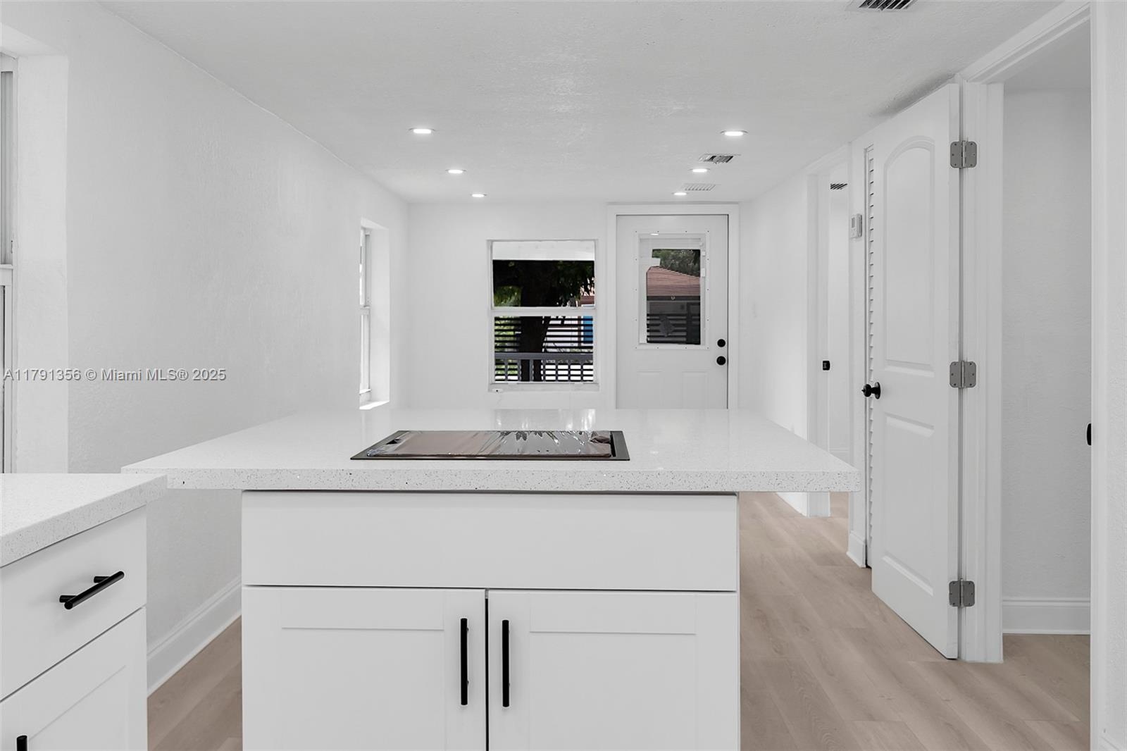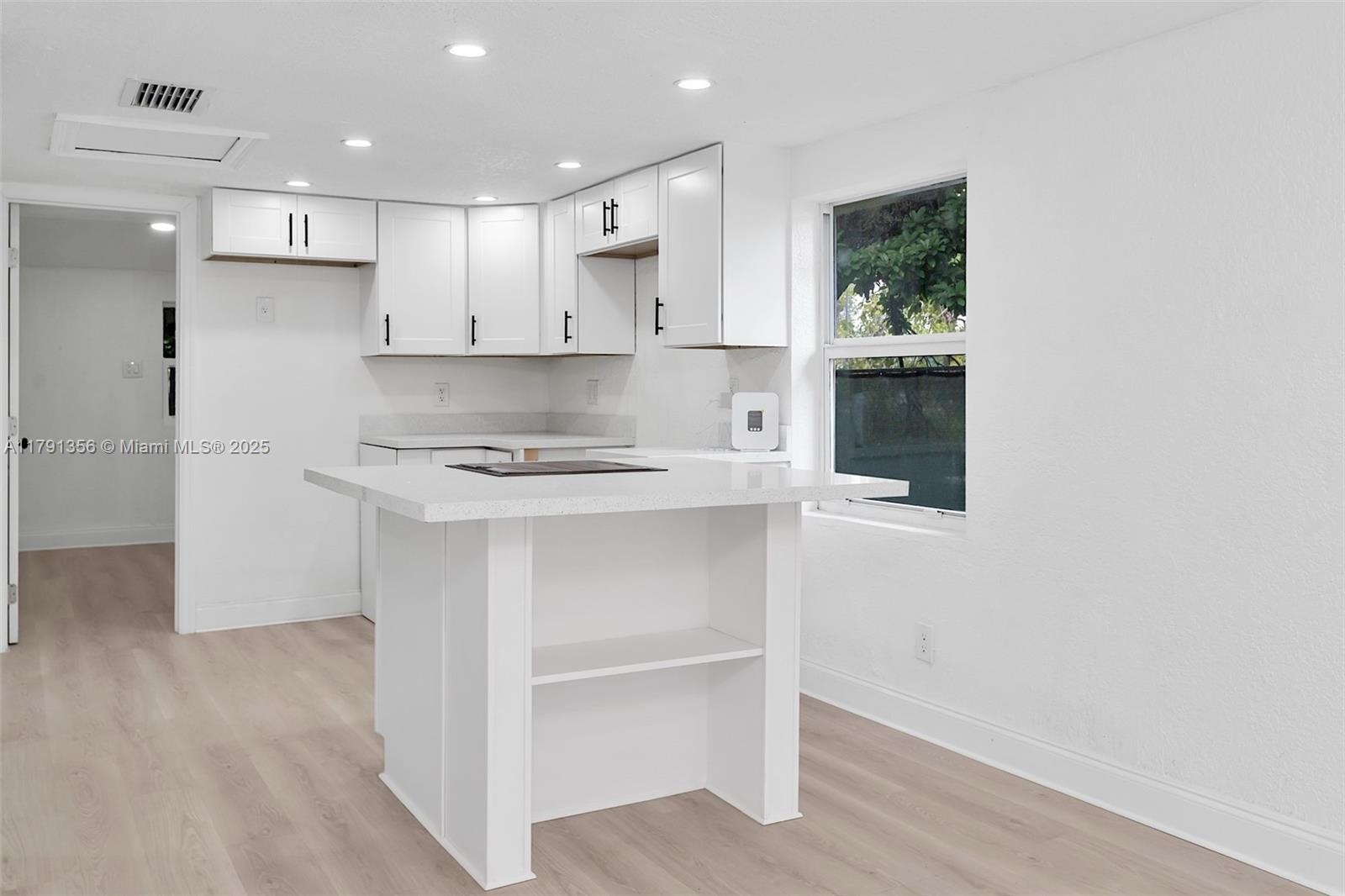 Move into this gorgeous 3 bedroom and 2 bathroom single family home ready to move in. New kitchen cabinets with quartz island and countertops, SS appliances, new vinyl floors, new bathrooms, new windows. Beautiful updated driveway enclosed with modern fence. Property it's larger than records (910 sqf approx.)