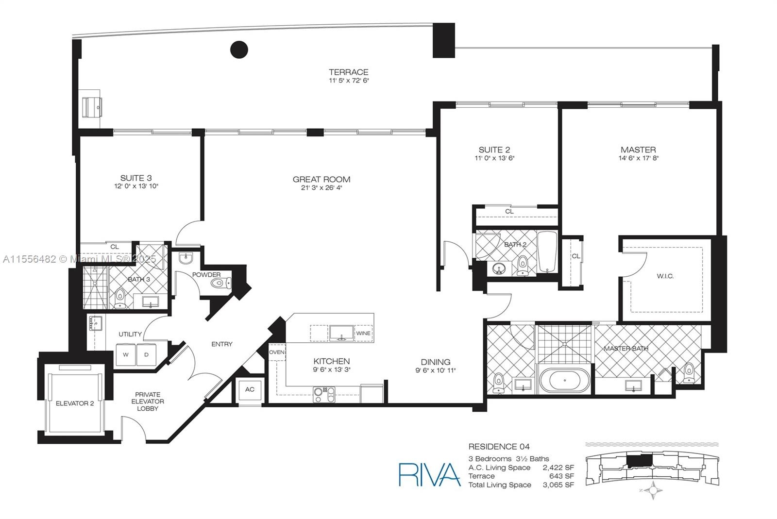 High-Floor RIVA Residence Offers Stunning Ocean, Intracoastal, Park & River Views from Every Room & Private Terrace w/Summer Kitchen for the Perfect Indoor/Outdoor Lifestyle. Private Elevator to Your Great Room w/Chef's Kitchen Featuring Italian Cabinetry, Marble Countertops, Sub Zero & Wolf Appliances. Primary Suite Boasts 2 Walk-In Closets, Backlit Vanities & Sizable Shower. All 3 Bedrooms Include Full Ensuite Bathrooms. 1204's Unique Appeal Includes Chic Lighting, Gorgeous Floors, Stylish Half Bath + 3 Parking Spaces, Storage, 4 Golf Lockers & Water-Sports Locker. Resort Quality Amenities: Waterfront Pool, Huge Gym, Yoga Studio, Steam, Sauna & Treatment Rooms, Jacuzzi, Resident's Lounge, Catering Kitchen, 3 Guest Suites, 2 Dog Walks & 400’ River Promenade. Boat Slips Available.