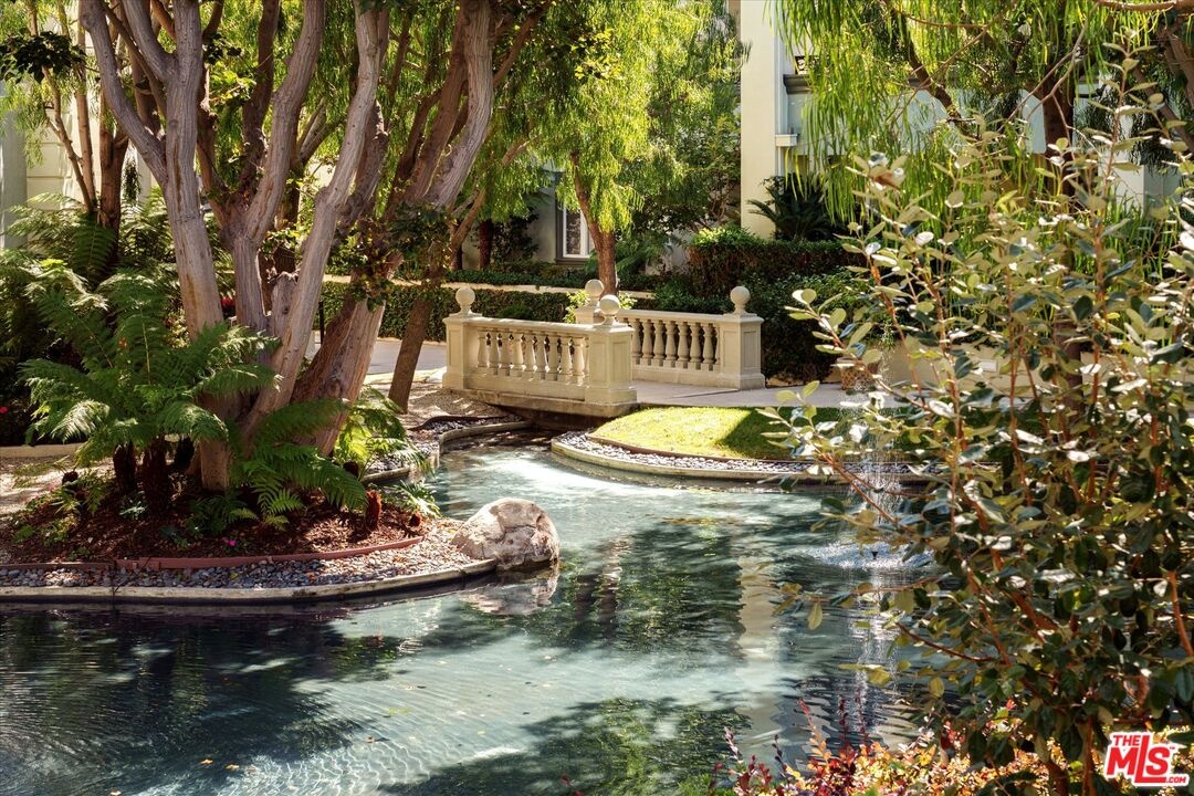 One of the premier residences in Century City's prestigious Le Parc community a beautifully updated and thoughtfully re-designed condominium offering exceptional craftsmanship, space, and privacy. This expansive 2-bedroom, 3-bath home is defined by clean architectural lines, high flat ceilings, and bespoke details throughout. Honed walnut floors run seamlessly through the main living areas, complementing the elegant custom moldings and recessed lighting found in every room. The formal living room is anchored by a fireplace with hand-carved French limestone mantle. The eat-in kitchen features marble countertops and backsplash, custom cabinetry, built-in marble topped desk, separate storage area, and direct access to the patio, creating an ideal space for everyday living and entertaining. A separate library is outfitted with built-in bookcases, offering a quiet retreat for reading or working from home. This could alternatively serve as a second bedroom with two closets and en-suite bath. The generously sized primary suite is a true sanctuary, with French doors leading to a landscaped balcony, dual walk-in closets with custom interiors, and a spacious marble-clad bath with soaking tub, dual vanities, and spa-style finishes. Additional highlights include a large in-unit storage closet, and excellent flow throughout the open-concept living and dining areas. Le Parc is a full-service, guard-gated community in the heart of Century City, offering resort-style amenities including two pools and spas, tennis courts, gym, and a clubhouse all just minutes from Beverly Hills, Westwood, and world-class dining and shopping.