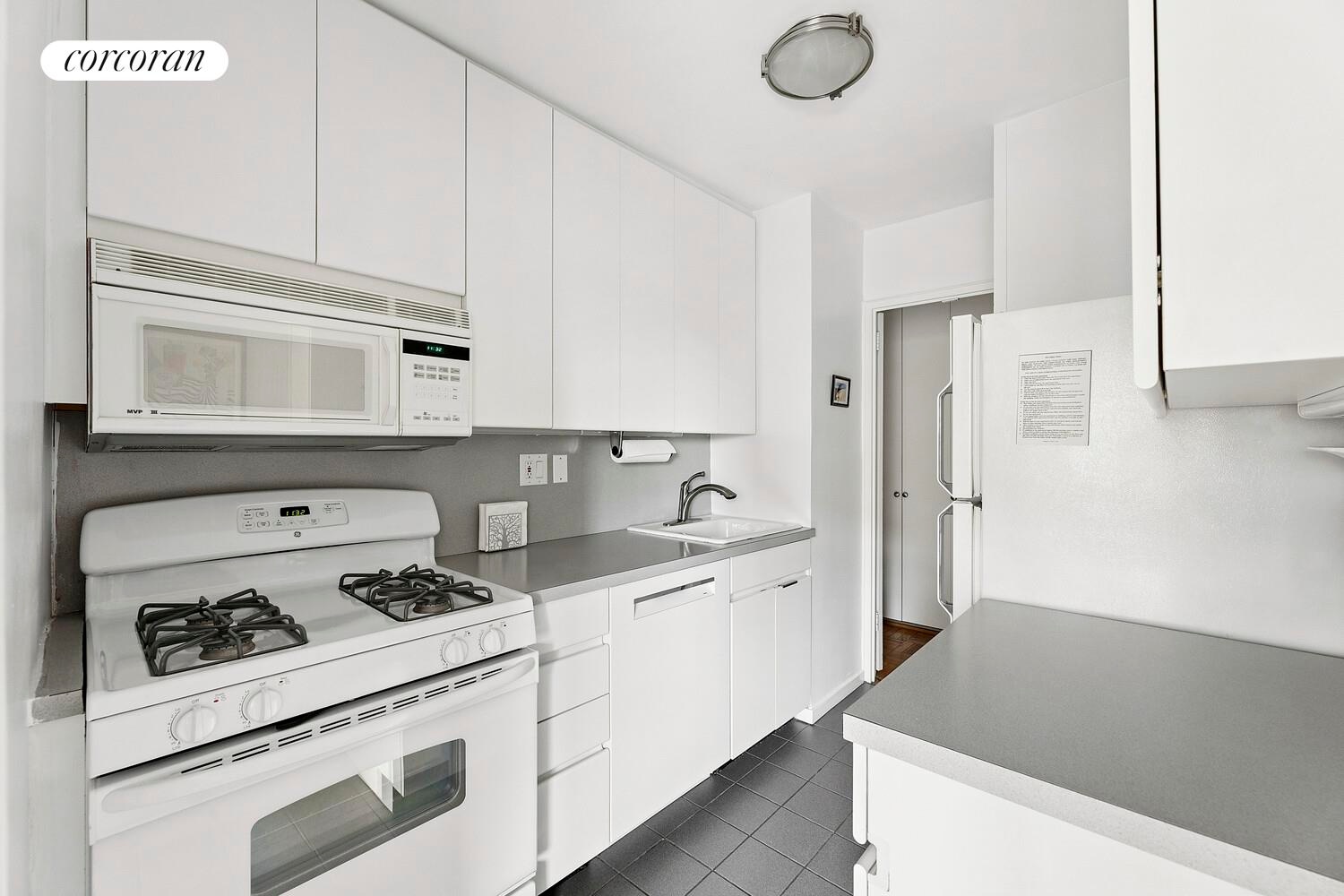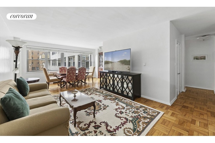 The apartment boasts a spacious living room, a bright dining area, and a meticulously kept kitchen outfitted with a pantry closet, under-cabinet lighting, and a newly installed dishwasher. Additional highlights include a pristine bathroom, hardwood floors in excellent condition, custom built-ins, and thoughtfully designed hallway closets that maximize both comfort and functionality. The generously sized bedroom is set back for optimal privacy and features a built-in vanity desk ideal for remote work. Quiet and inviting, this residence is the perfect pied--terre or full-time home for a discerning buyer seeking a move-in ready space in one of Manhattan's most coveted neighborhoods.