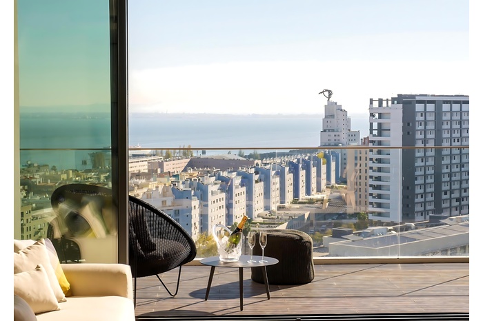 This stunning penthouse duplex sits on the 13th and 14th floors of the prestigious Martinhal Residences in Parque das Nações, offering a total area of over 220 square meters, with more than 25 square meters of private outdoor space. Designed by internationally renowned architect Eduardo Capinha Lopes, this home combines elegance, comfort, and contemporary family living with breathtaking views over the Tagus River and the Vasco da Gama Bridge.