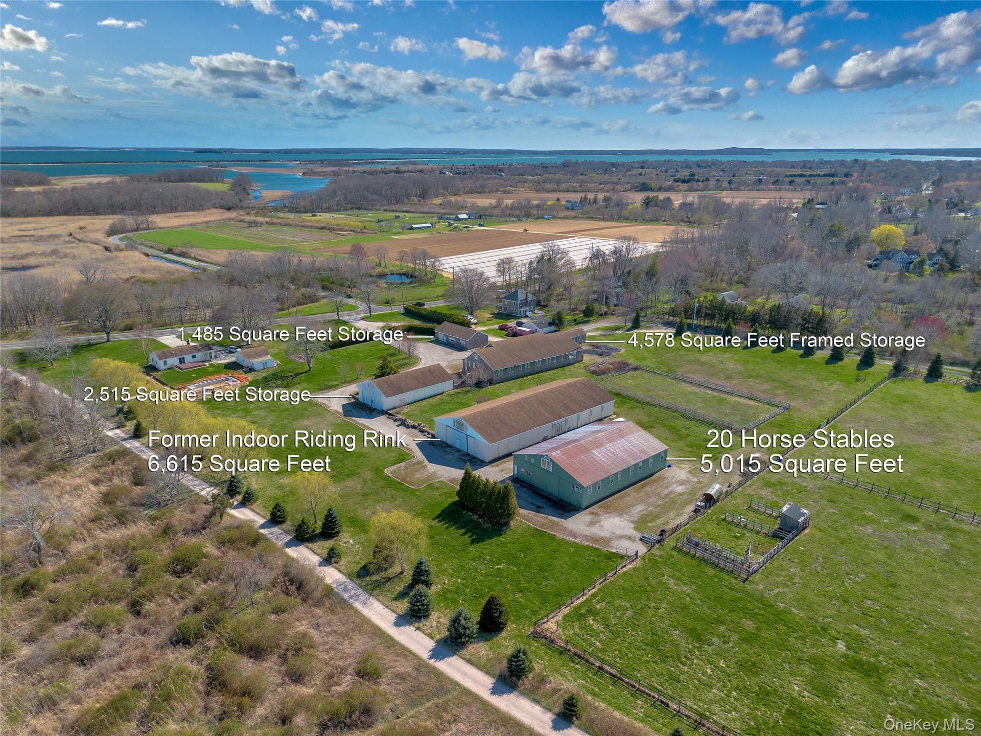 This exceptional property offers a unique opportunity to own a versatile, three-part agricultural estate in the coveted hamlet of Orient, NY, boasting approximately 20,209 square feet of interior space across multiple structures. Situated in a picturesque North Fork setting, the estate perfectly blends agricultural functionality, equestrian potential, and residential living.