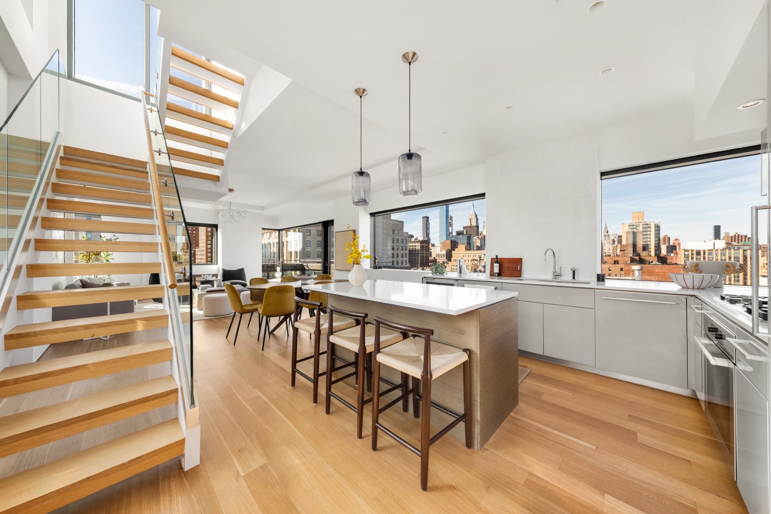 Spanning 2,350 square feet with 3 bedrooms, 3 bathrooms, and 1 powder room, this sun-splashed sky villa enjoys a prime Manhattan address at the nexus of the East Village, Gramercy, Union Square, and NoHo. White oak hardwood floors and soaring ceilings over 11 feet high run throughout. The home also comes with a high-efficiency HVAC system and a Bosch washer and dryer.