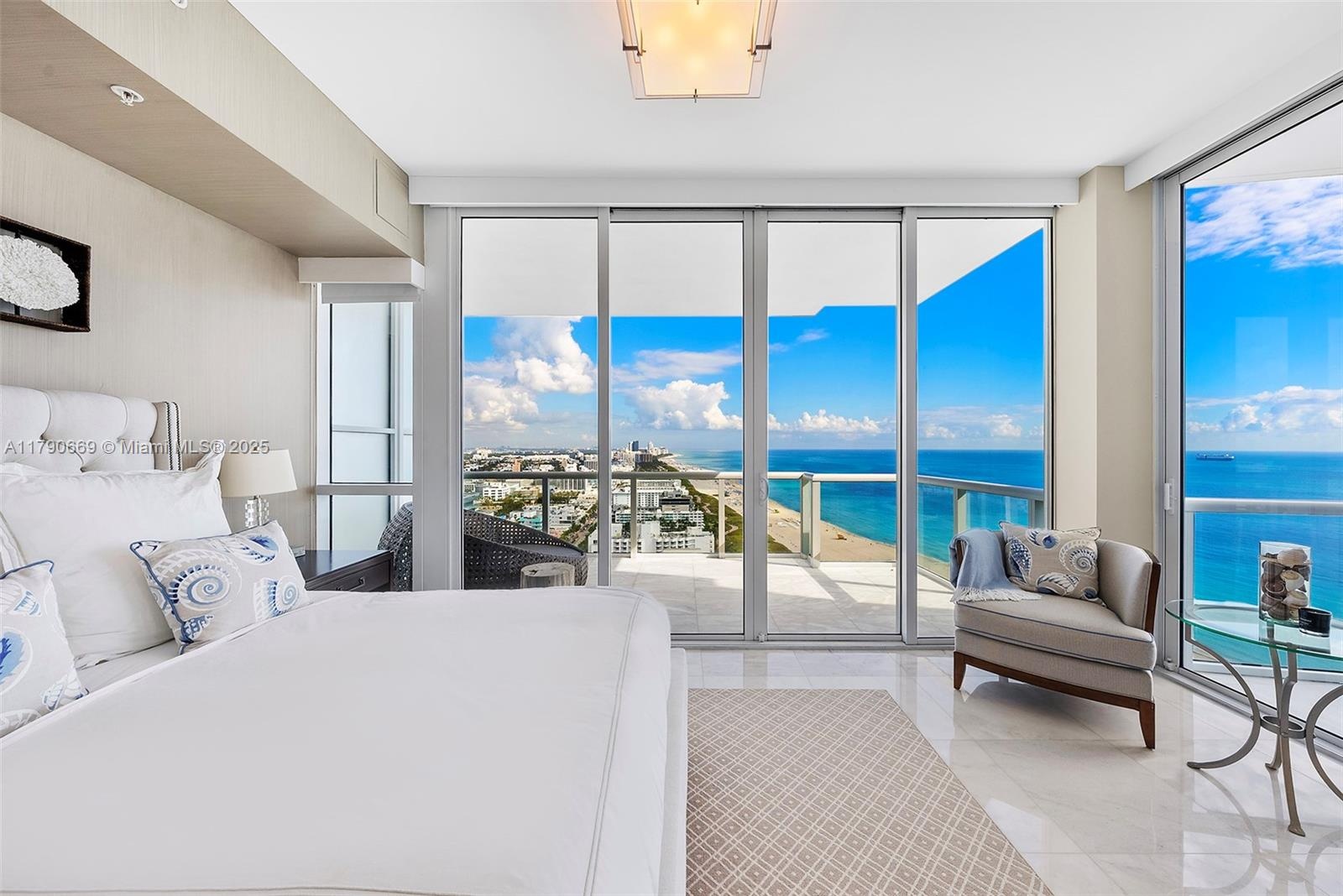 Experience uninterrupted ocean vistas from this bespoke residence masterfully curated by RGR Interior Architecture. A rare opportunity to own in the most sought-after line of the prestigious Continuum North Tower, this exquisite 3-bedroom, 3.5-bath home offers breathtaking, panoramic views from every room. Step off your private elevator into a light-filled sanctuary featuring 10-foot ceilings, pristine marble floors, and exceptional living spaces designed for both refined entertaining and everyday comfort. Blending sophistication, serenity, and high design, this exceptional residence is complemented by the world-class amenities and five-star services that define the Continuum lifestyle.