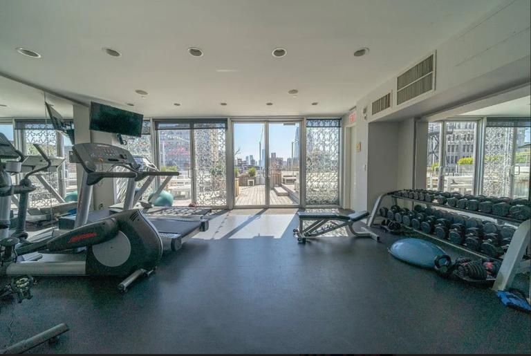 Penthouse-level fitness center, sauna, lounge, and rooftop terrace and sundeck