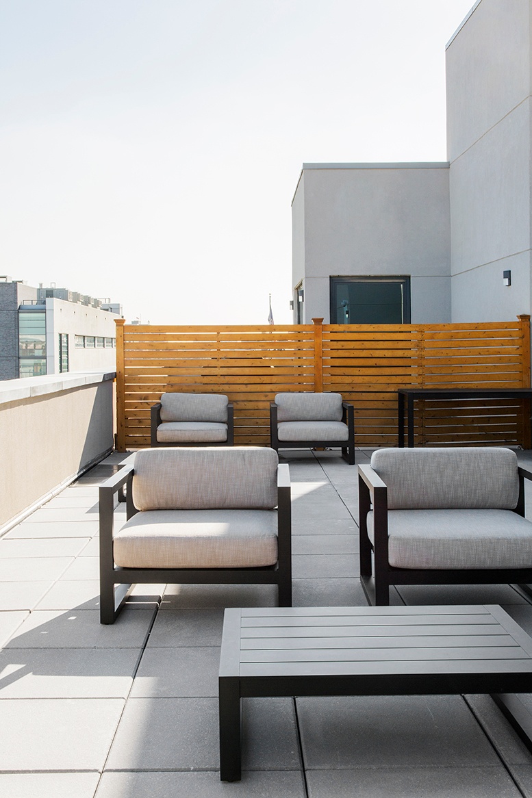 The Marx is a boutique condo in the heart of the Kaufman Arts District, offering a virtual doorman, gym, resident lounge, laundry room, bike storage, and a furnished roof deck with grill.