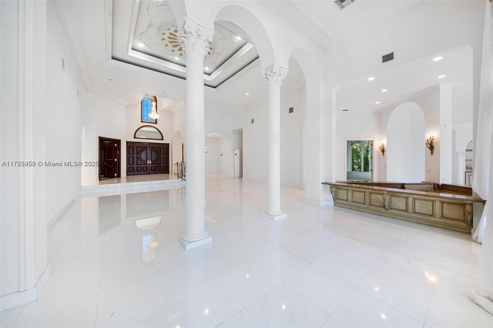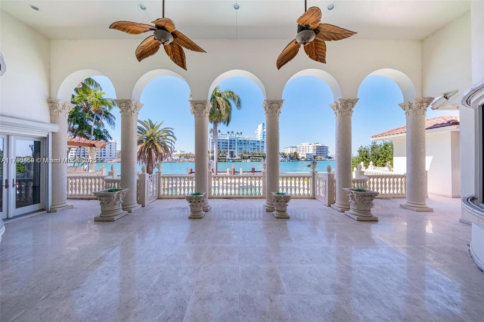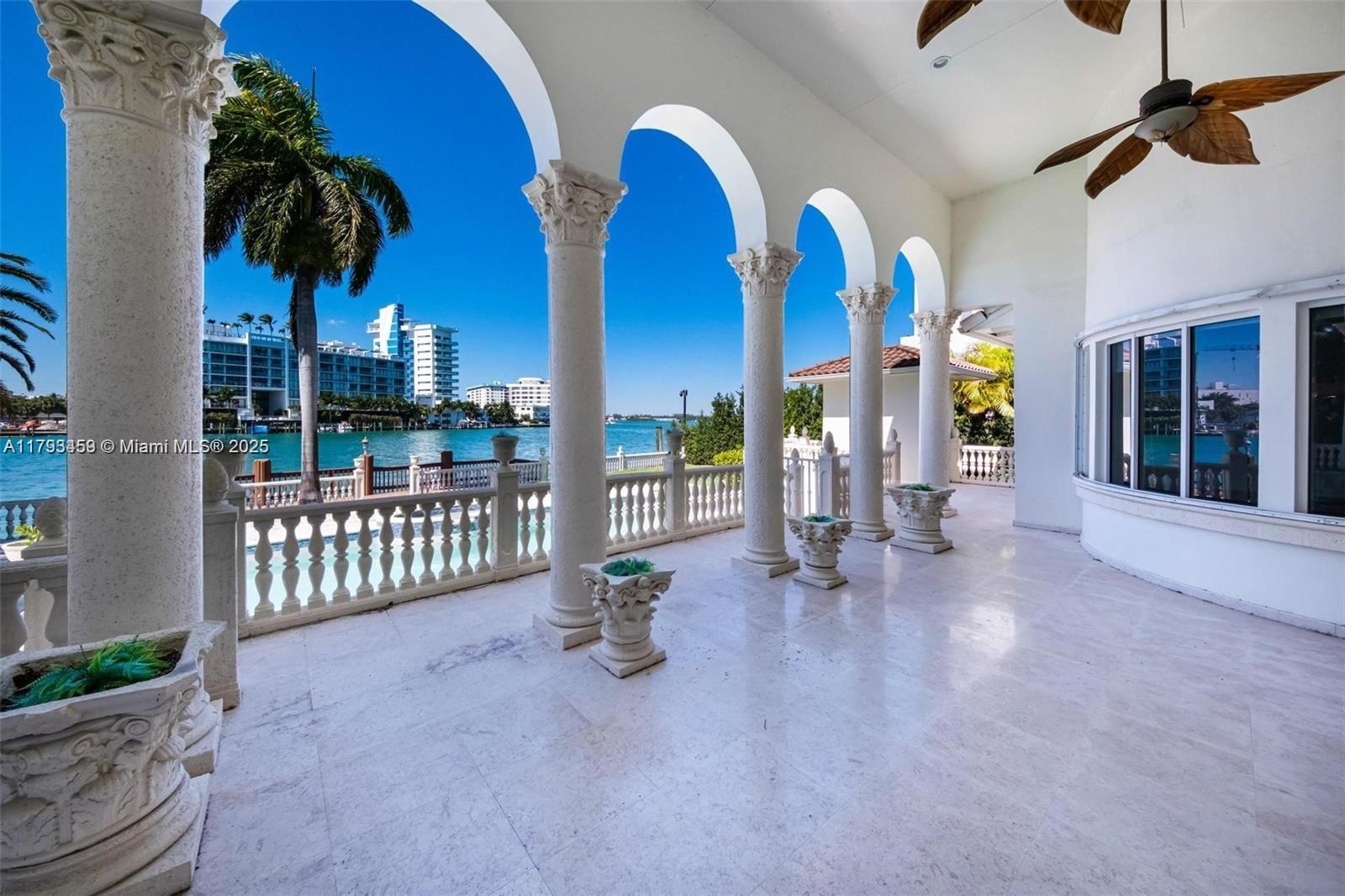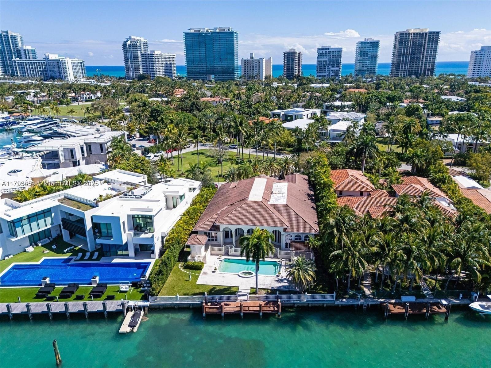 Tucked away in a private cul-de-sac, this Mediterranean estate offers over 100 feet of prime waterfront with breathtaking, bay views. The 7,000 SF residence is designed for privacy, featuring a grand circular driveway, no front-facing neighbors, and a serene, exclusive atmosphere. Nestled across from a lush green park, the home enjoys a rare balance of bay vistas and natural beauty. Located in one of Miami’s most prestigious gated communities, residents enjoy access to a private marina, with Bal Harbour Shops just a short walk away. The property also includes Kobi Karp-designed plans for a striking 12,000 SF modern estate, presenting a rare opportunity to either enjoy the existing home or bring a visionary new build to life.