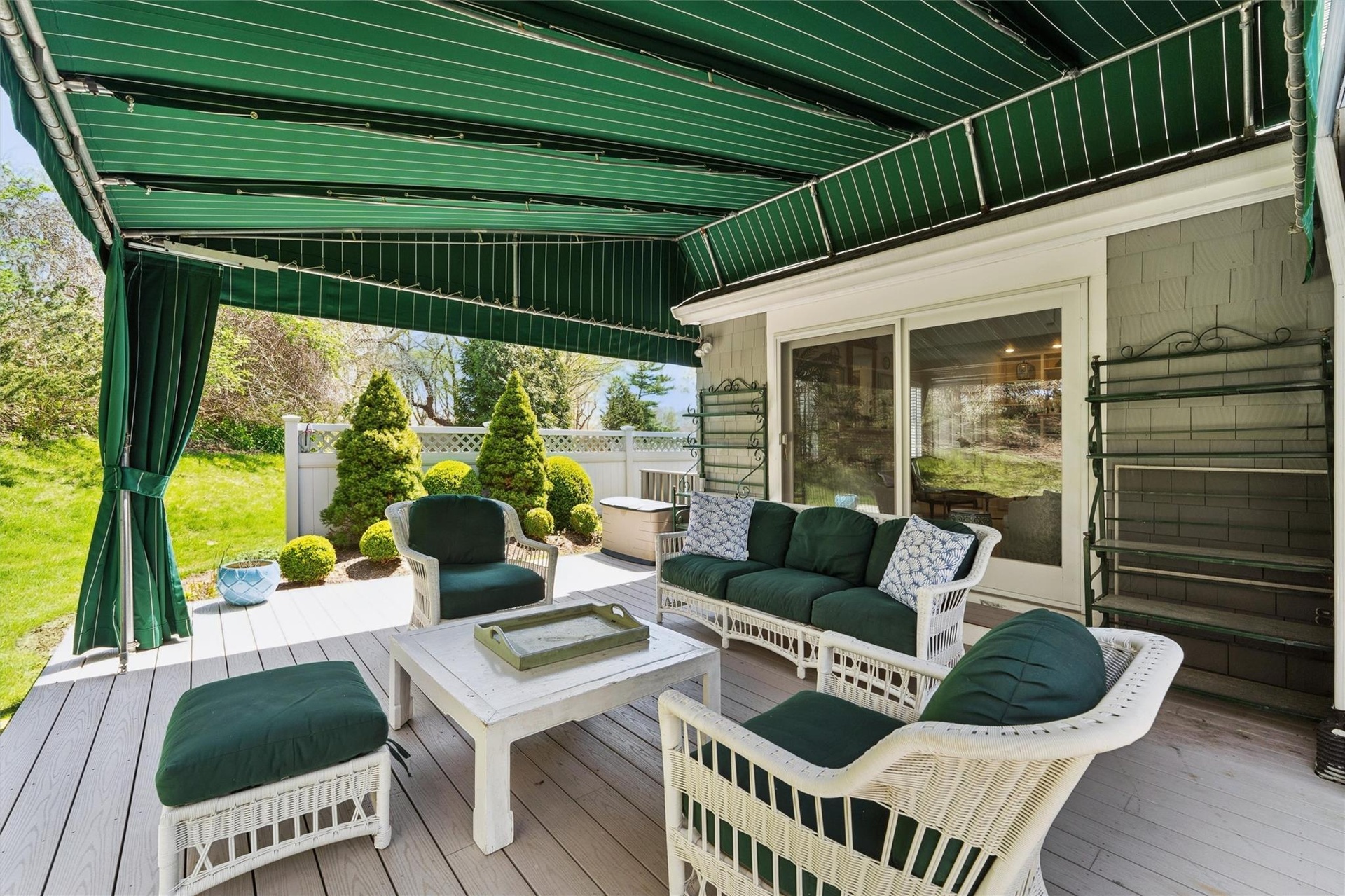 - Deck featuring a yard, an outdoor living space, and outdoor dining area