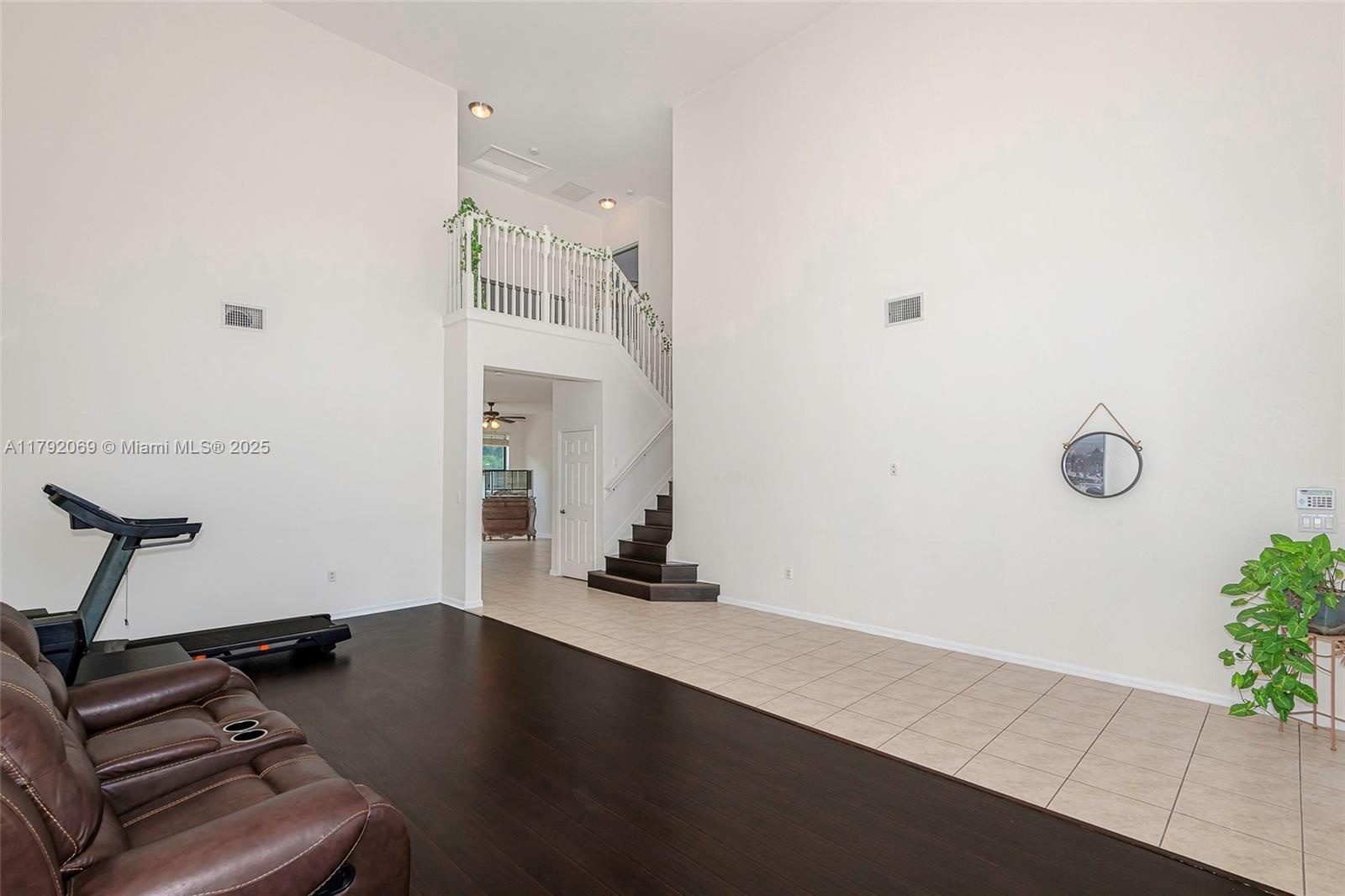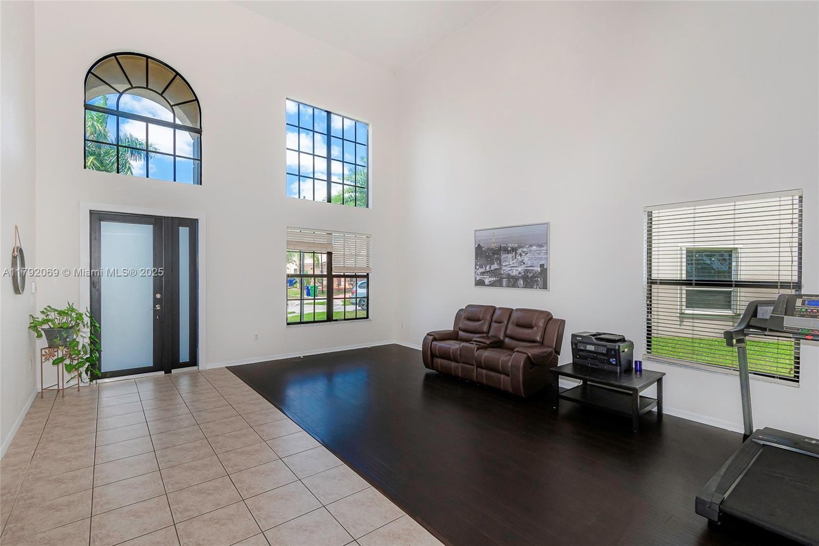 Two-story home in one of the best cities in South Florida at Miramar gated community, very quiet neighborhood conveniently located next to the Turnpike and 75 expressways and Coral Cove elementary school. This house features 4 bedrooms and 3 baths, with 1 bedroom and a full bath at ground level and a large open kitchen along with laundry and family room area with double height ceiling living room. Plenty parking space with 2 car garage plus a driveway space, grand master bedroom on the second floor with jacuzzi and ample walking closet.