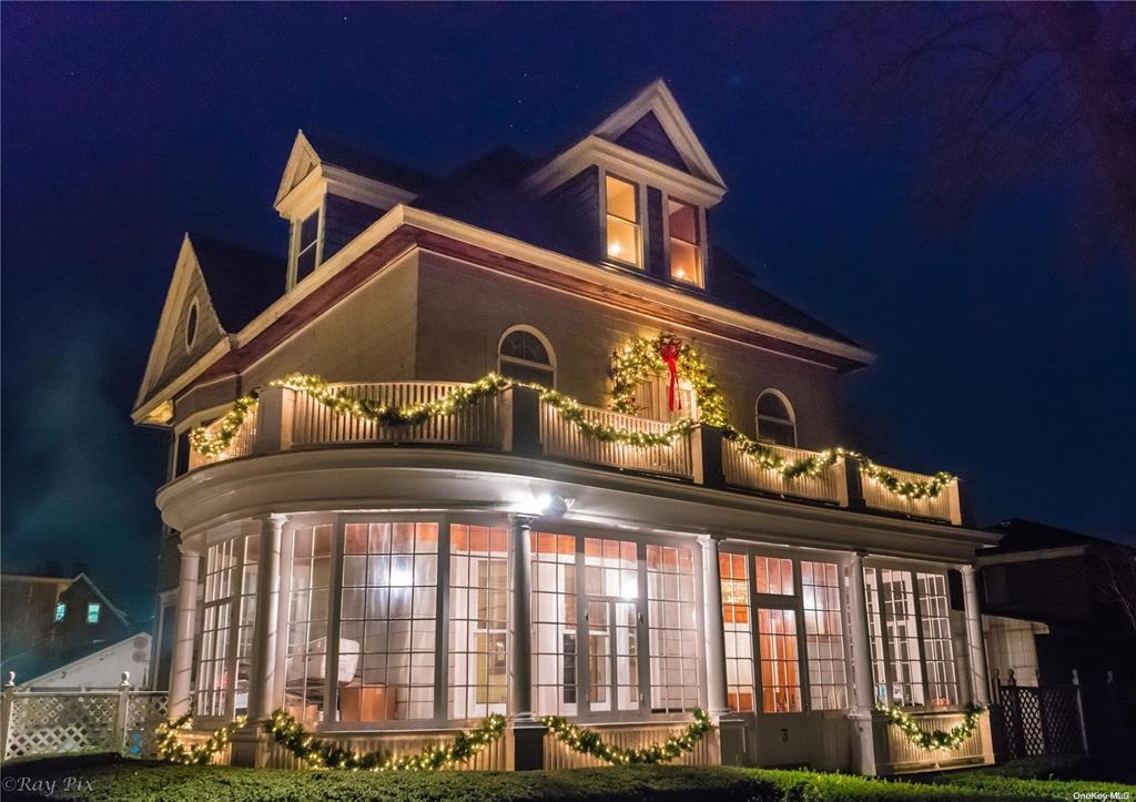 Welcome to this Stunning Queen-Anne Victorian Home for sale in College Point NY. This house has been given a Queensmark for architectural elegance by the Queens Historical Society. Ideal for larger families seeking the charm, character, and comfort of its timeless design, this multi floor home (4,300+ Sq. ft.) with 10 foot tall ceilings, is located on an oversized lot (80 x 77 or 6,164 Sq. ft.), and boasts an enclosed wrap-around porch, 4 bedrooms, 2 full bathrooms, large kitchen, living, and dining rooms, office space, and recreational space with loft, as well as a fully finished basement with laundry room, detached two-car garage with attic for storage and driveway for at least three additional cars, storage shed, 20- foot pool with deck space for entertaining, and ample fenced-in yard space. This spacious retreat features 350 pane glass windows that invite natural light offering picturesque views of the court's central greenspace. Spacious and fully finished basement and recreational areas are perfect for playrooms, home offices, or even additional storage options. Original copper features accent a brand-new roof that was installed on both the main home as well as the detached garage in May of 2024. Warranty on the installation and shingles for 10 and 30 years, respectively. In addition, the heated detached two-car garage with attic, side shed, and under-deck space all provide for ample storage.