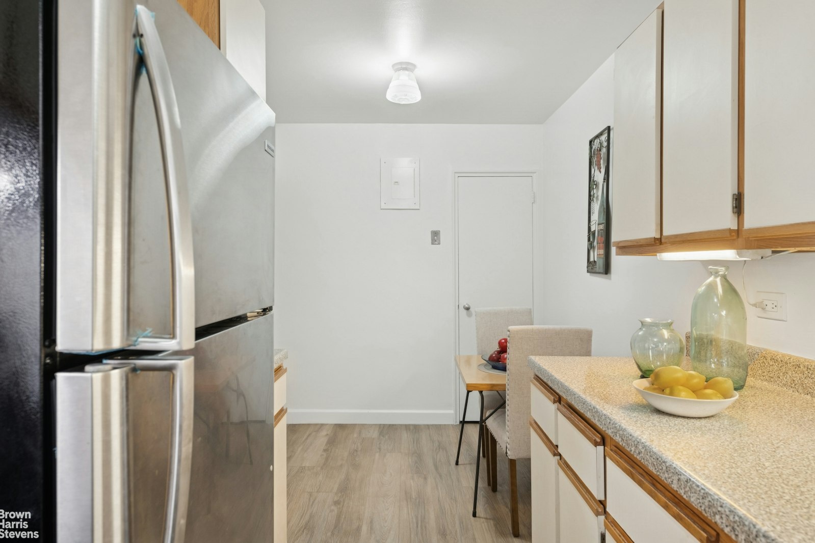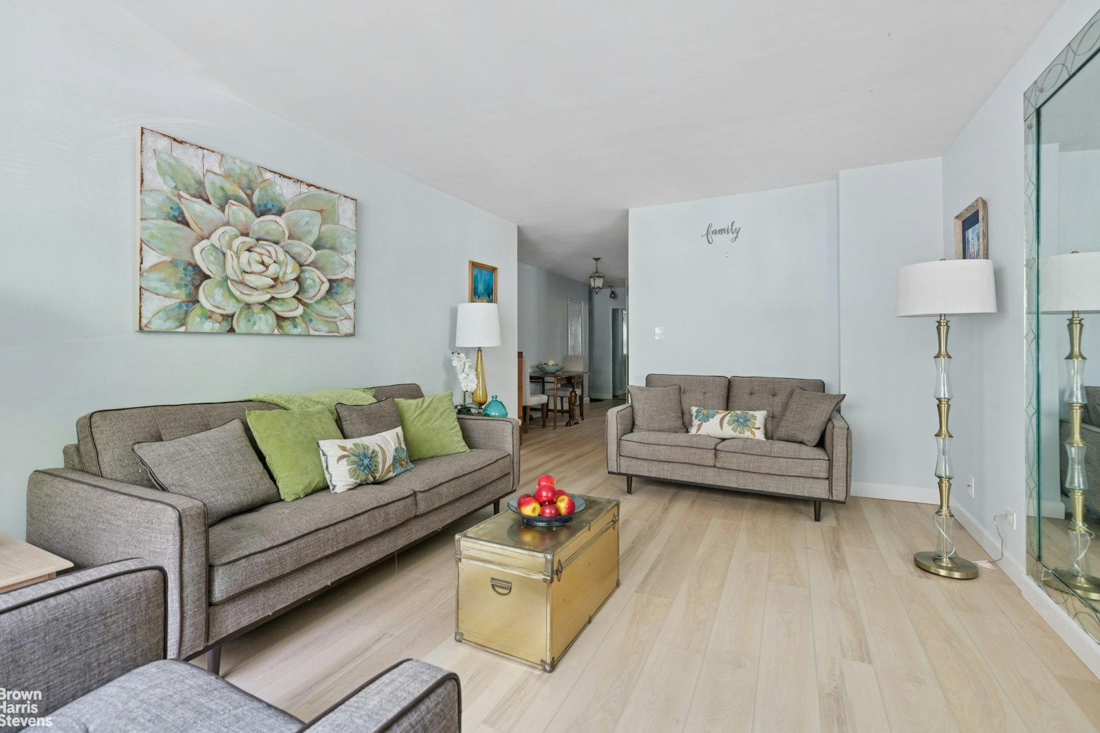 The building is staffed with a full-time doorman, offering both security and a warm welcome. Additional amenities include a central laundry room, area for private storage (included with the unit), and an on-site parking garage. This pet-friendly co-op allows pied- a -terre and permits subletting after two years of residency.