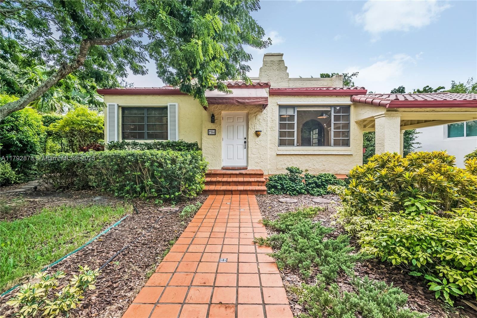 NEW PRICE! Discover the allure of this lovely Old Spanish Mediterranean home in prime Coral Gables. The main house features 3 bedrooms and 2 bathrooms, including a primary suite with an en-suite bath. You'll appreciate the blend of classic charm with arched entries, tile and wood floors, tall ceilings, and inviting living spaces like the sunny enclosed front porch and spacious dining/living rooms. The eat-in kitchen was fully renovated in 2025 & it boasts a generous pantry. The separate 1-bedroom, 1-bathroom guest cottage offers flexibility -perfect for a home gym, office, or guest suite and includes a washer/dryer. Your private oasis awaits. Enjoy the large side patio —ideal for entertaining. With a 7,500 SF lot, there is plenty of space to add a pool and still have room to play. Practical features include a carport with loft storage, accordion hurricane shutters, a newer A/C (5yrs), and a newer flat roof (5 yrs). Location is key – Close to the Shops at Merrick Park & easy access to Miracle Mile & Coconut Grove.