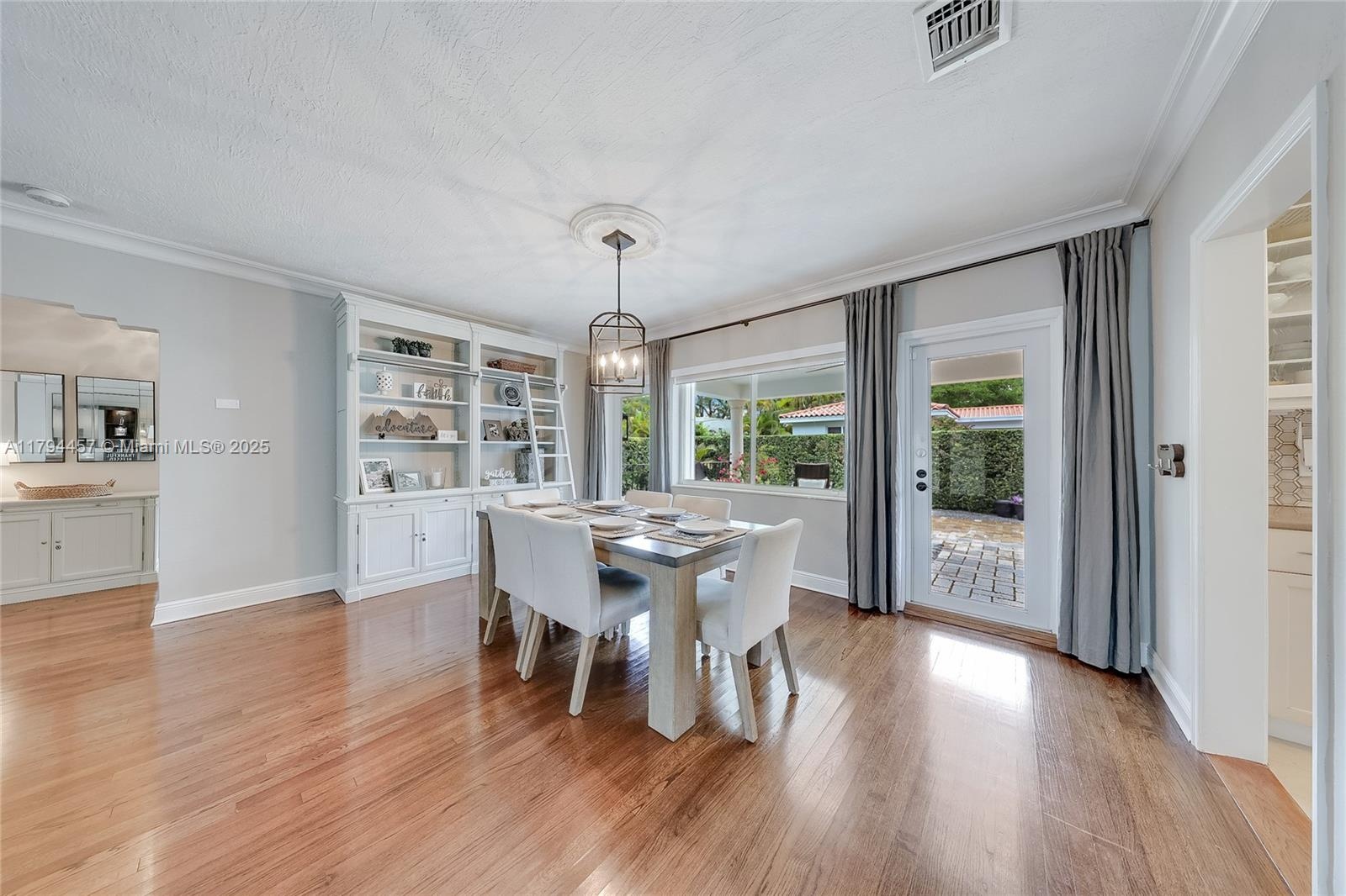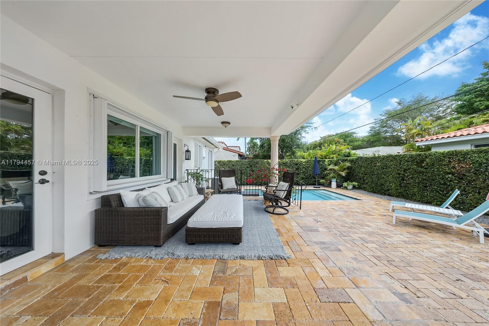 Elegant Corner Residence on Exclusive Tangier Street. This impeccably expanded Coral Gables residence offers sophisticated living in one of the area’s most sought-after enclaves. This 3-bedroom, 3-bathroom home blends timeless elegance with modern upgrades. The home’s split floor plan was enhanced by a masterful 2015 addition, creating a spacious primary suite with a refined sitting area and custom-designed walk-in closet. The formal living and dining rooms open gracefully to the backyard, where a stunning pool—completed in 2022—features a natural stone surround, salt-chlorination system, and ambient LED lighting, creating a resort-like atmosphere. The second bedroom includes its own en-suite bath, ideal for guests or family.