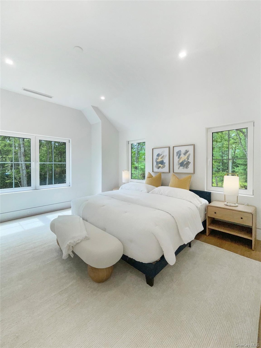 - Bedroom featuring recessed lighting and vaulted ceiling