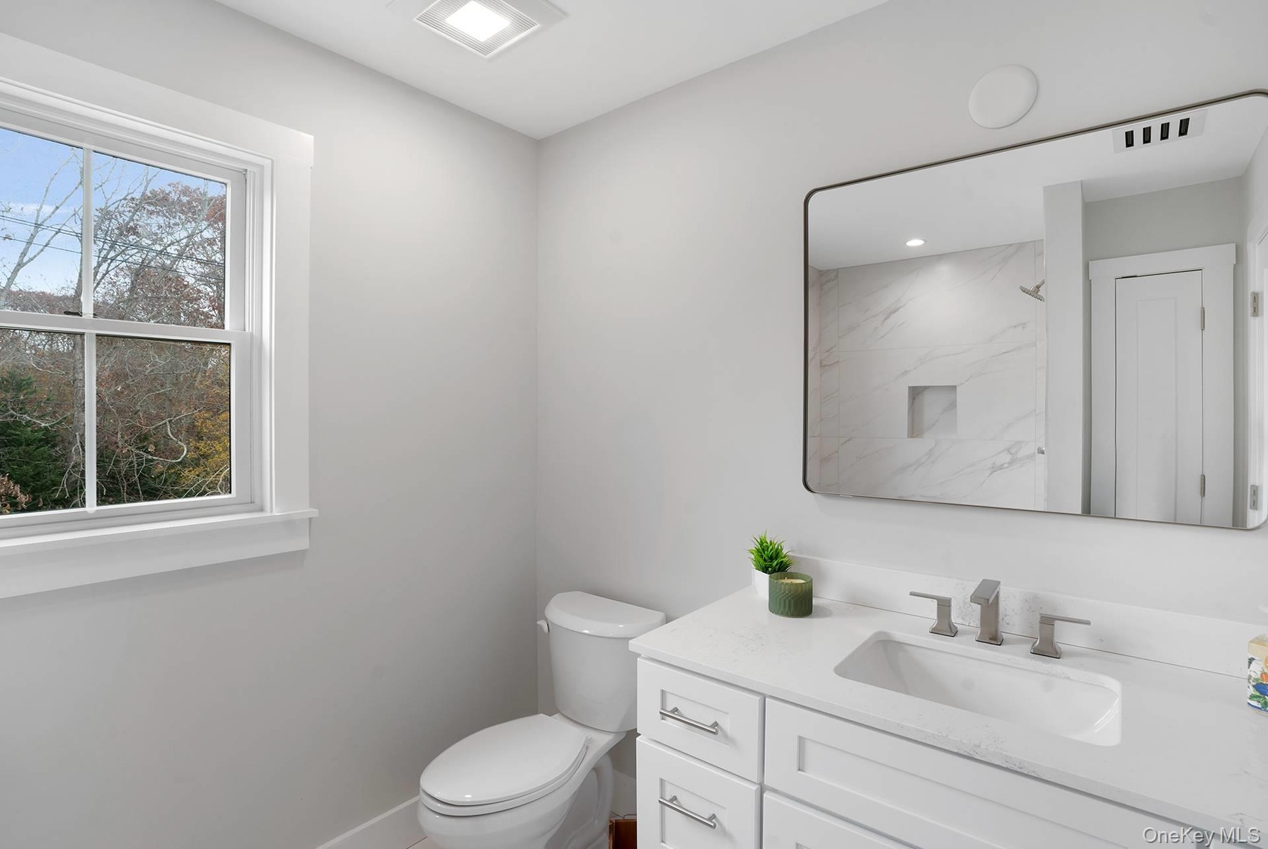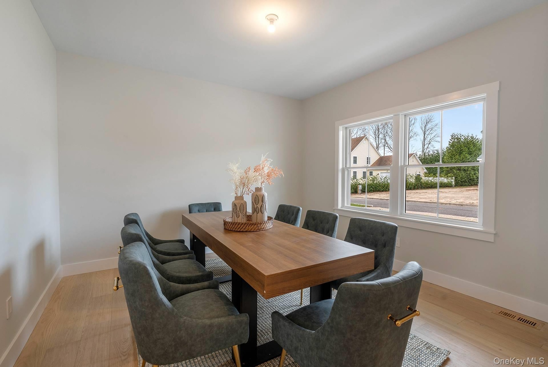 Welcome to a brand-new, meticulously crafted home in the heart of Hampton Bays. This spacious 4-bedroom, 2-full and one-half bathroom residence offers the perfect blend of modern elegance, comfort and style. Sited in a prime location, on a private drive, south of Montauk Highway near all the desired amenities. The open floor plan with spacious living areas feature plenty of natural light and hardwood floors throughout. A chef-inspired eat-in kitchen is fully equipped with stainless steel appliances, center island, and sleek quartz countertops. The delightful mahogany front porch, 2-car garage and full basement with egress complete this brand-new offering. Ready for immediate occupancy.