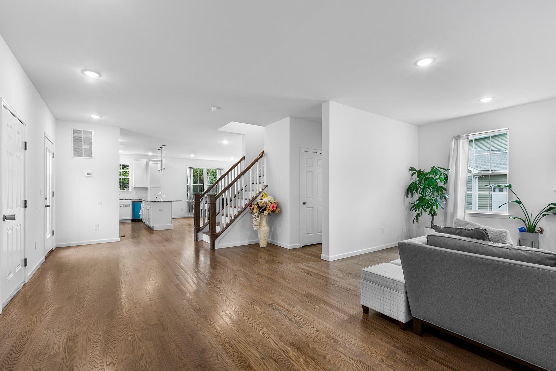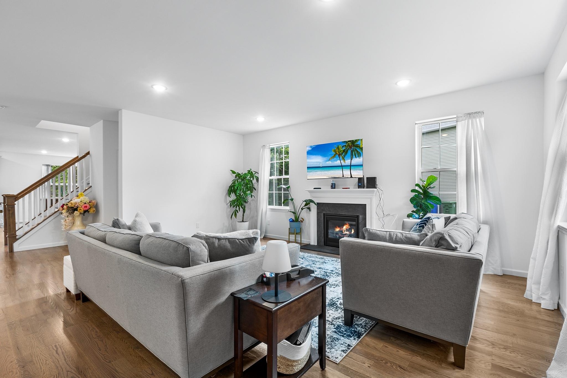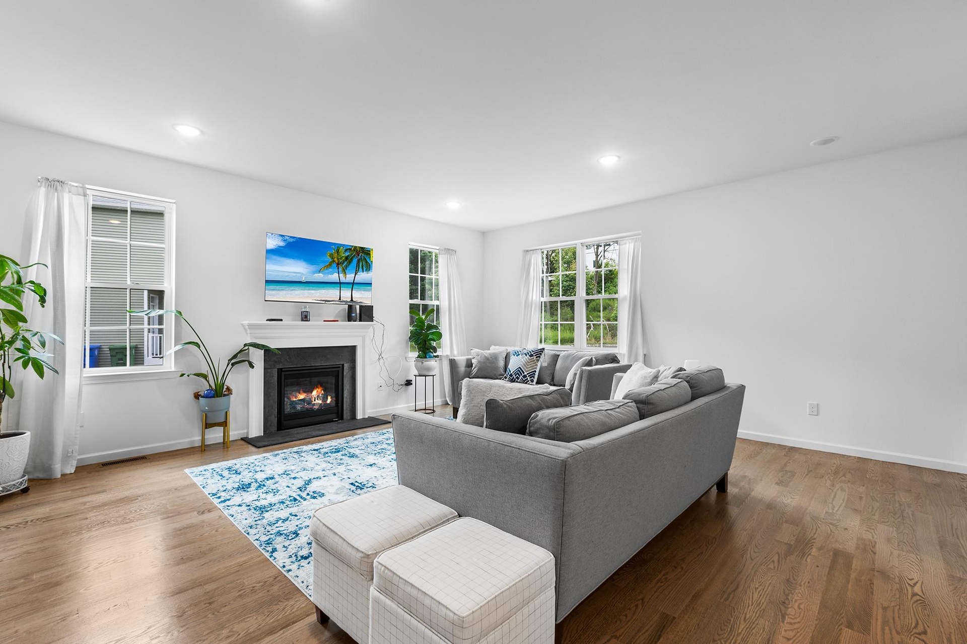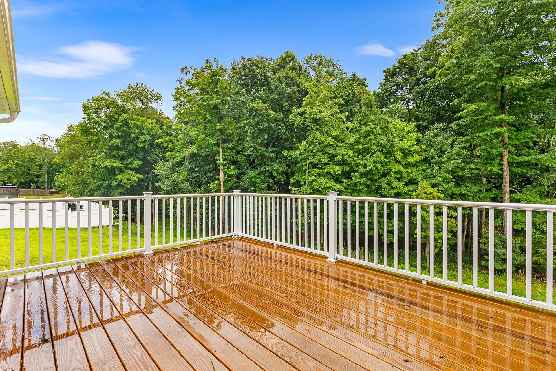 Welcome to this beautiful newly built 4-bedroom, 3.5-bath home featuring a spacious 2,760 sqft layout across three levels of living space. The gourmet kitchen features an island with a breakfast bar and flows seamlessly into a large dining area. The luxurious primary suite includes a full ensuite bath with dual vanities, a shower, and a separate soaking tub, all highlighted by expansive windows. For added convenience, the laundry room is situated upstairs near the bedrooms. The lower level offers a sliding door to a large patio, while the kitchen opens to a sizable deck on the side of the home. This property combines modern updates with ample indoor and outdoor living spaces.