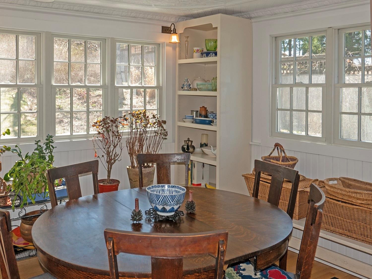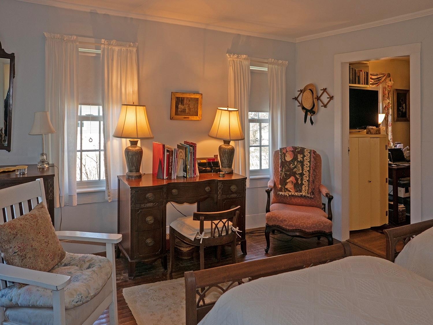 This quintessential classic Greek Revival/Eyebrow home, circa 1850, is located in a historic quiet country Hamlet. Ready to move in, it is in great condition, meticulously maintained, and has much to offer with lots of natural light and charming layout.  Entrance hall leads to the living room on the right, bedroom to the left, and straight ahead, the original Greek Revival stair to the second floor. The spacious living room has a period mantle with a cozy woodstove insert and, at the rear, the newly renovated sunny eat-in kitchen has recently installed appliances, cabinets, and quartz countertops, with plenty of room for dining. The downstairs bedroom leads to a pleasant office space and to a full bath. The office also has a door to a delightful (unheated) garden tool shed which leads to the outside patio and gardens. Upstairs, are two bedrooms and a bathroom, plus a great studio or children’s playroom in the finished attic wing. The almost one acre of property includes a vintage garage (with attractive roofline and shingles), stone patio, stone walls, mature trees, and paths bordered by beautiful perennial flowers and ferns. It backs up to woodlands and a monumental rock ridge on the adjacent property. Situated in the tiny historic Hamlet of Ancram, on the banks of the Roeliff Jansen Kill, where, according to Wikipedia, during the American Revolution, the "Livingston Forge," powered by the Roe Jan, produced "shot, cannonballs, and perhaps most importantly, the huge chain that was installed across the Hudson River at West Point as a defense against British ships going upriver." Today the vibrant Hamlet is home to Ancram Little Store (now a breakfast, lunch, and catering store), Simons General Store (now an artist studio), and Ancram Grange (now the Center for the Arts, an amazing performance venue). The home is centrally located between southern Berkshire mountains in Massachusetts, western Litchfield Hills in Connecticut, and, in New York State, northern Dutchess County and southern Columbia County.  New York City is about two hours by car or train (Metro North via Wassaic or Amtrak via Hudson)