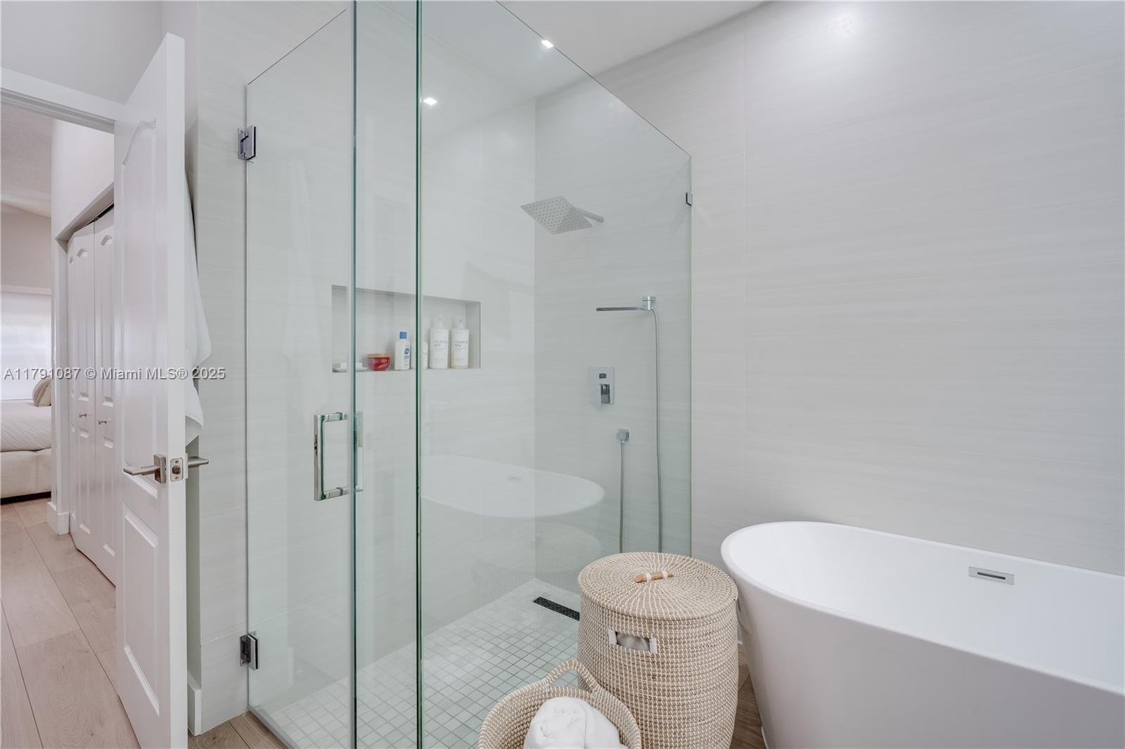 - Spacious and renovated main bathroom with a shower and separate tub *