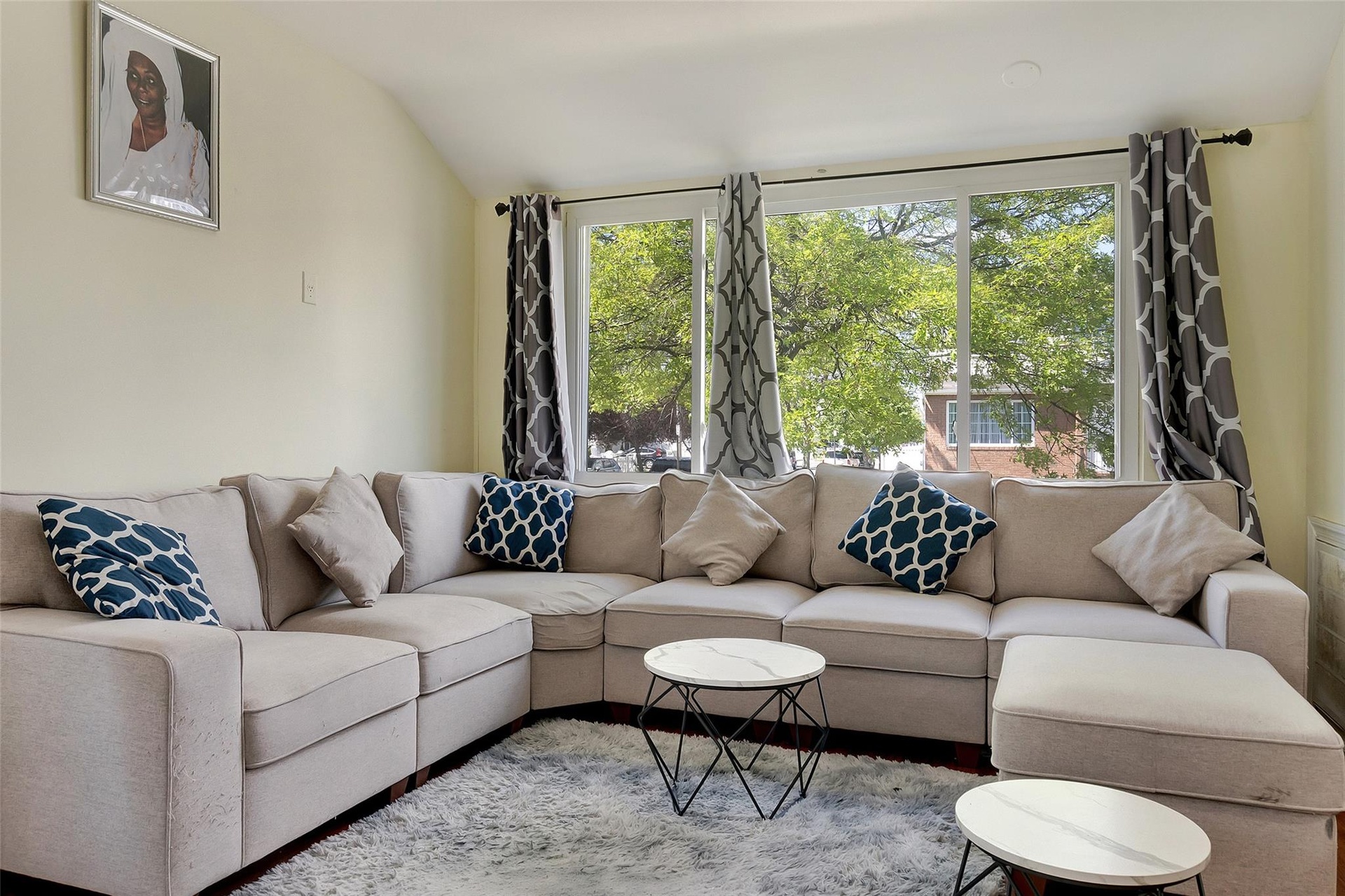 - Living room featuring vaulted ceiling